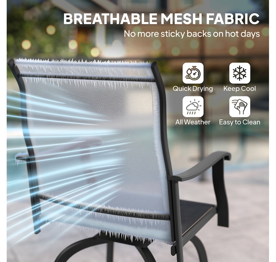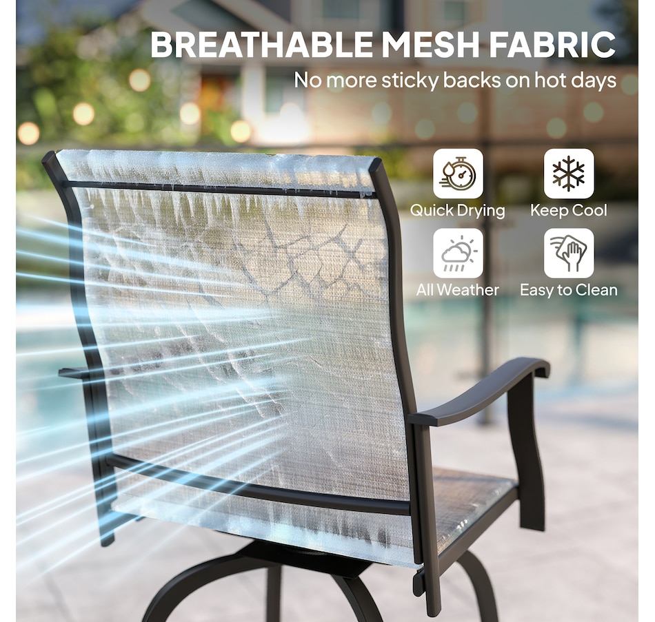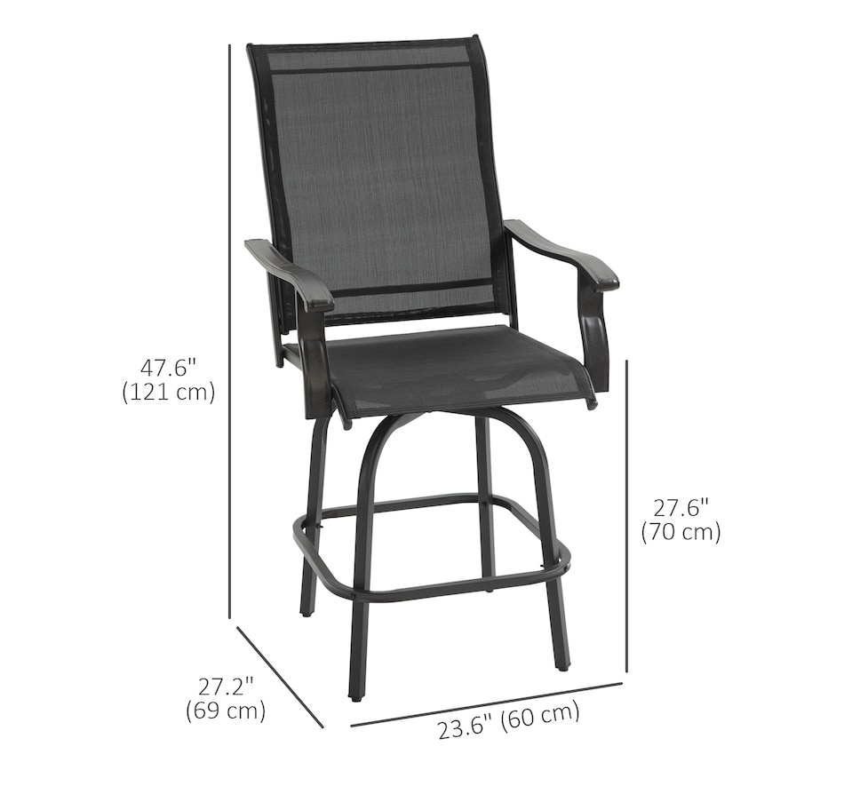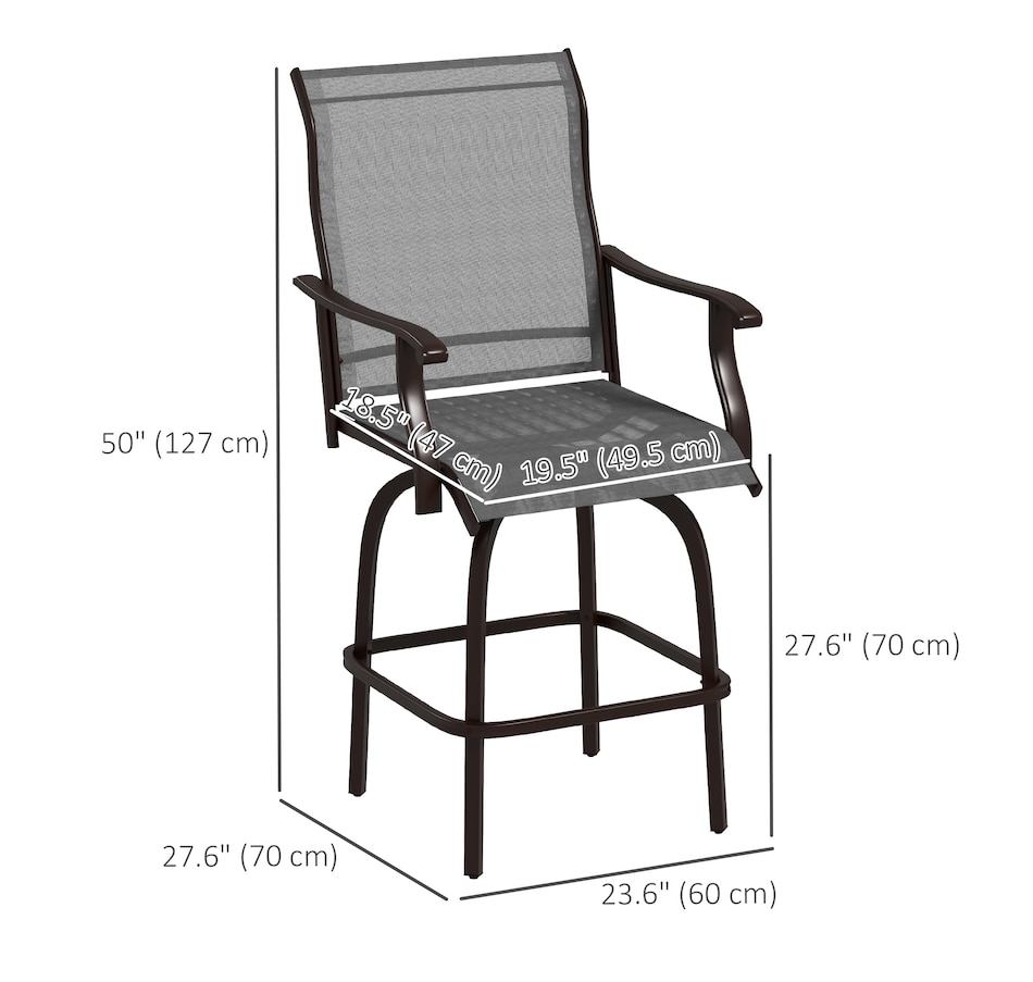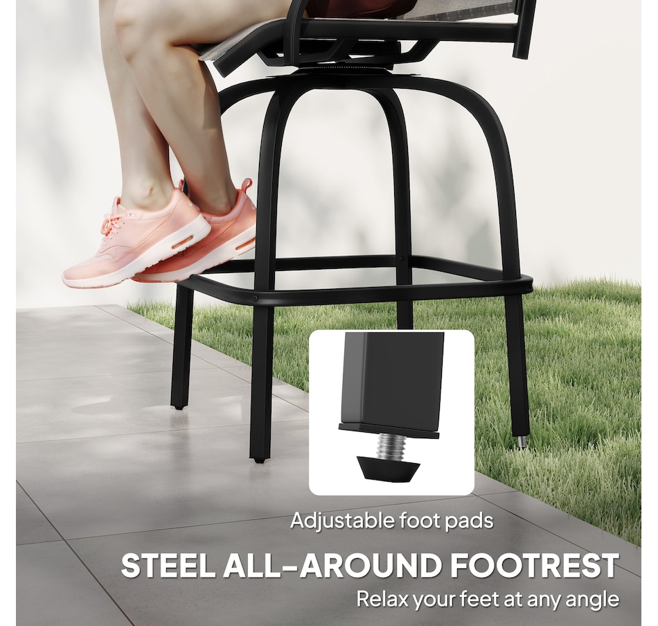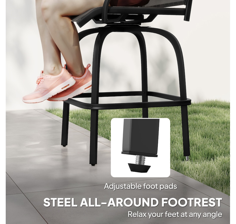 Outdoor Swivel Bar Stools Set of 2 with High Back Curved Armrests
