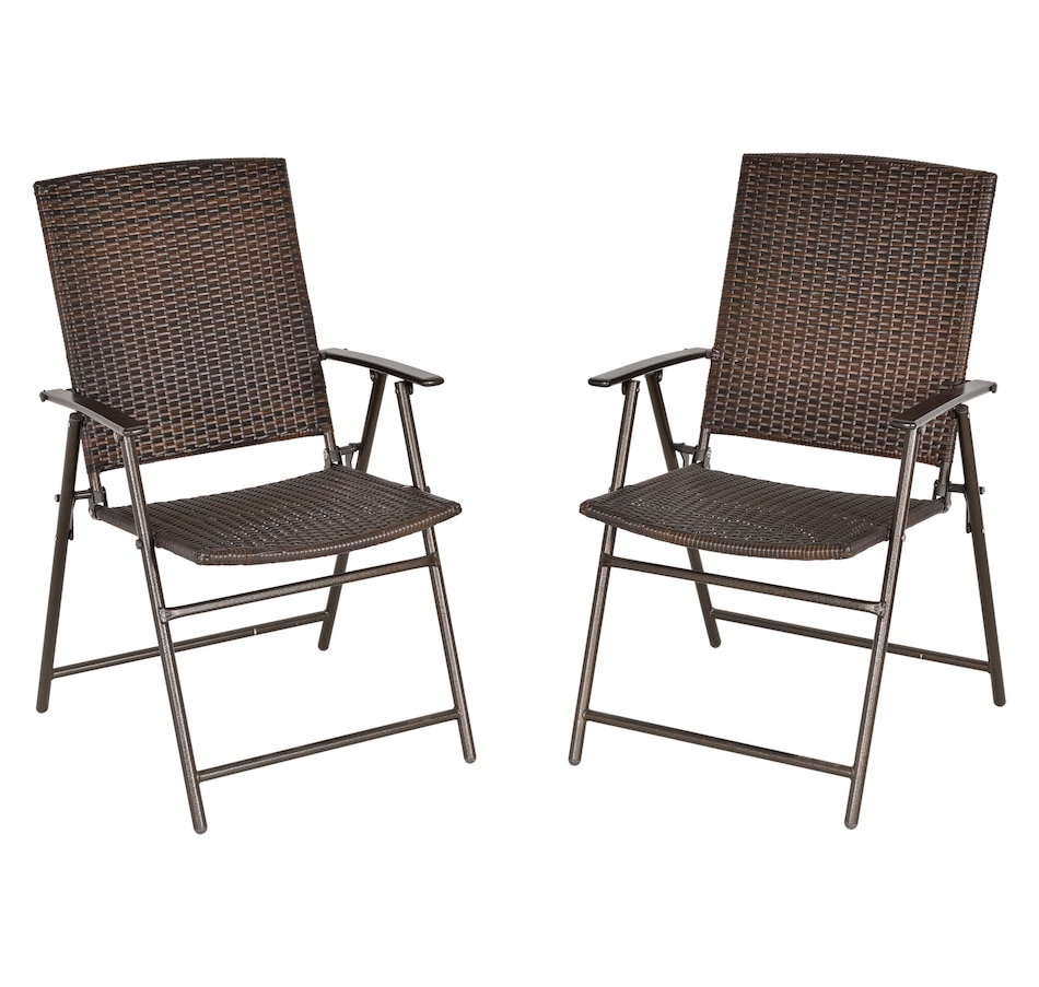 Outdoor Wicker Dining Chair Rattan Foldable Chair Set of 2 Brown