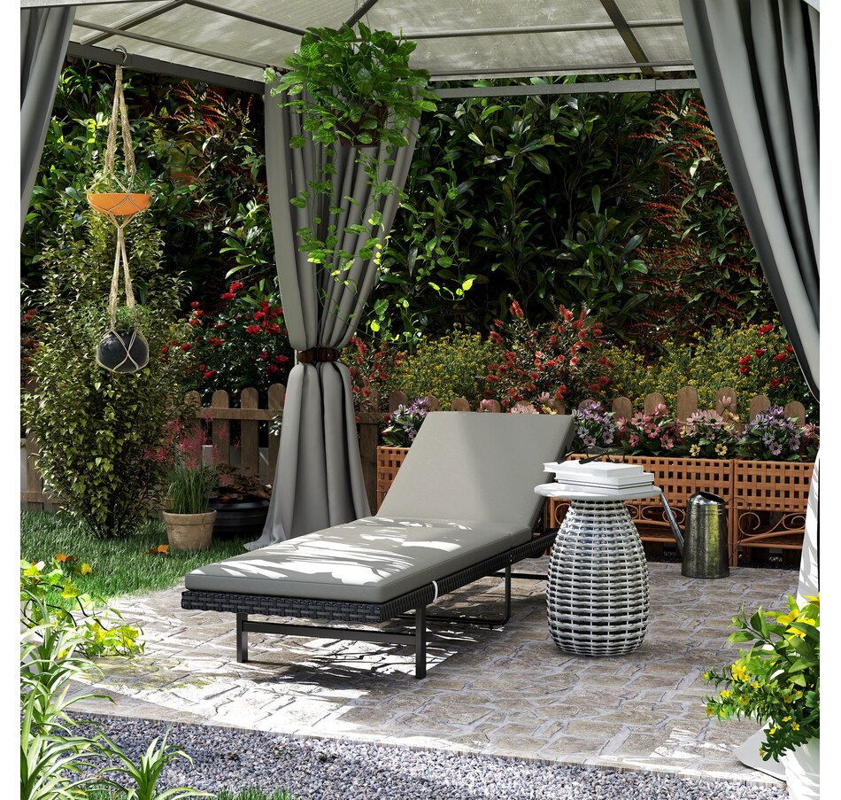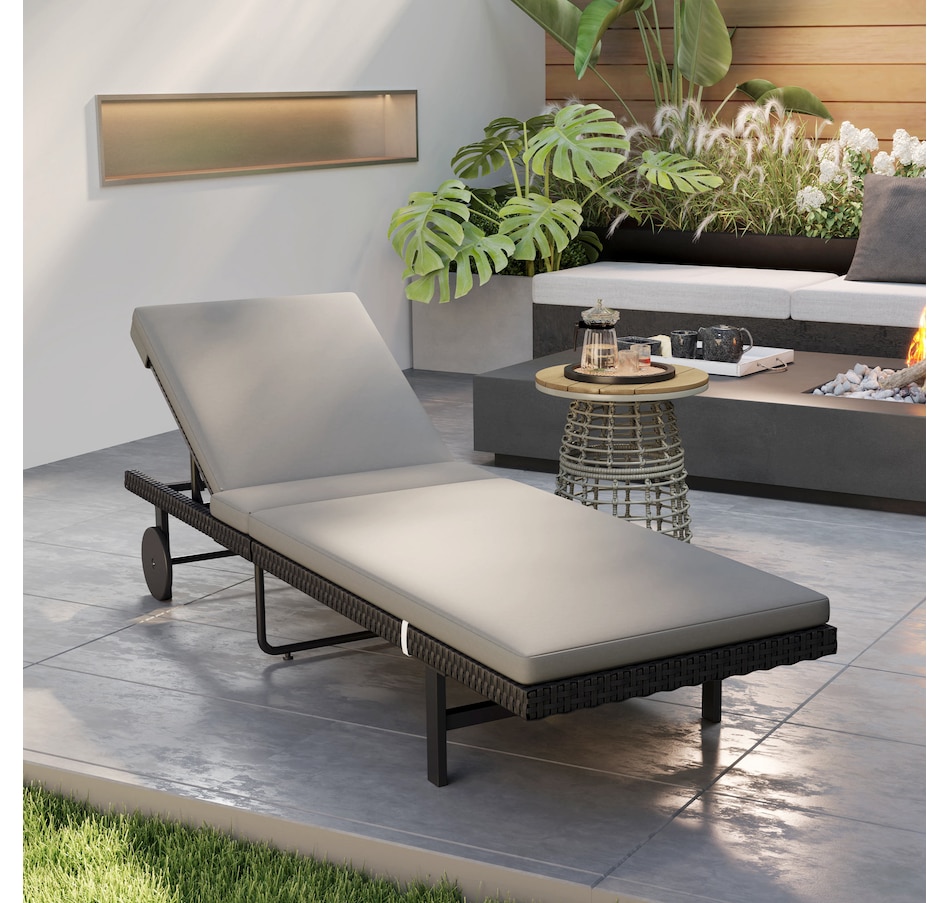 PE Rattan Patio Chaise Lounge Chair, 5-Level Adjustable Back, Grey