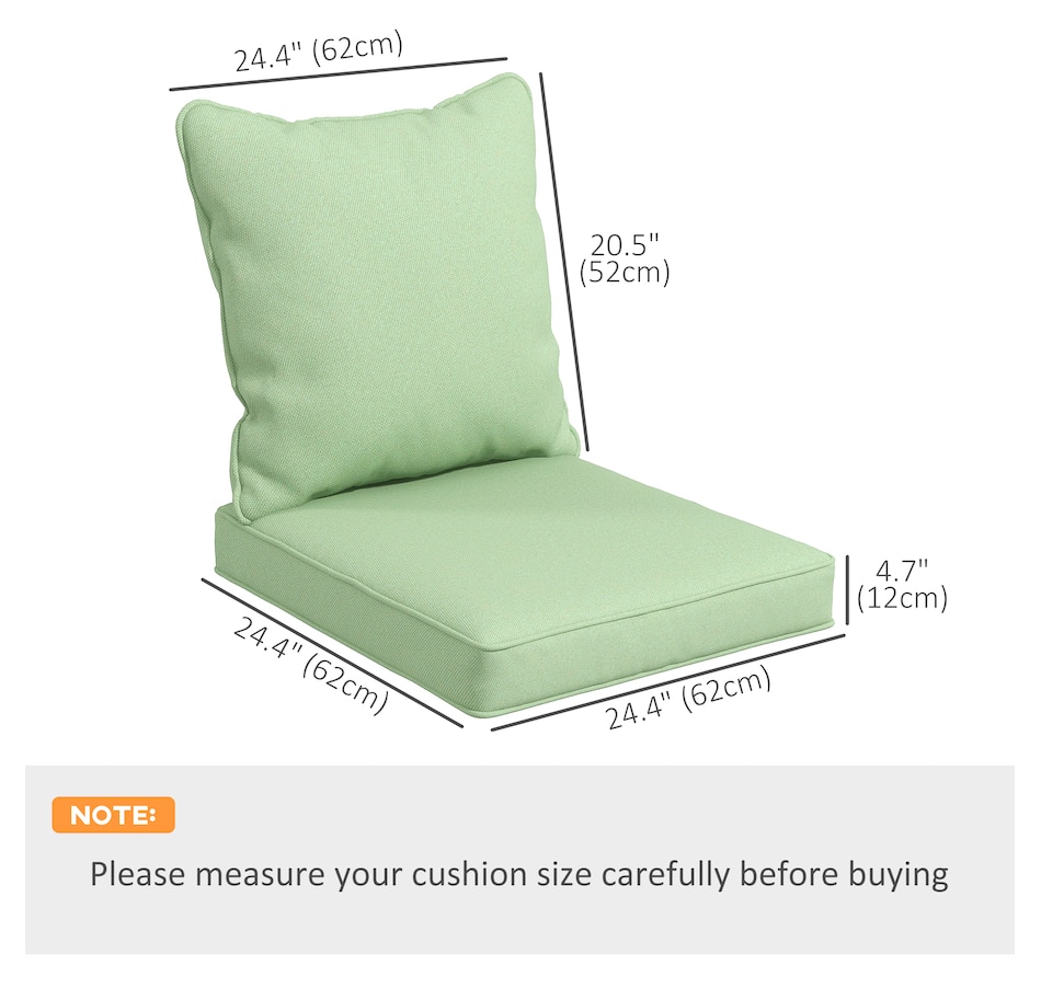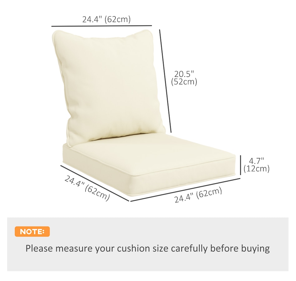● Seat Cushion Dimensions: 24.4" L x 24.4" W x 4.7" H (62 x 62 x 12 cm);