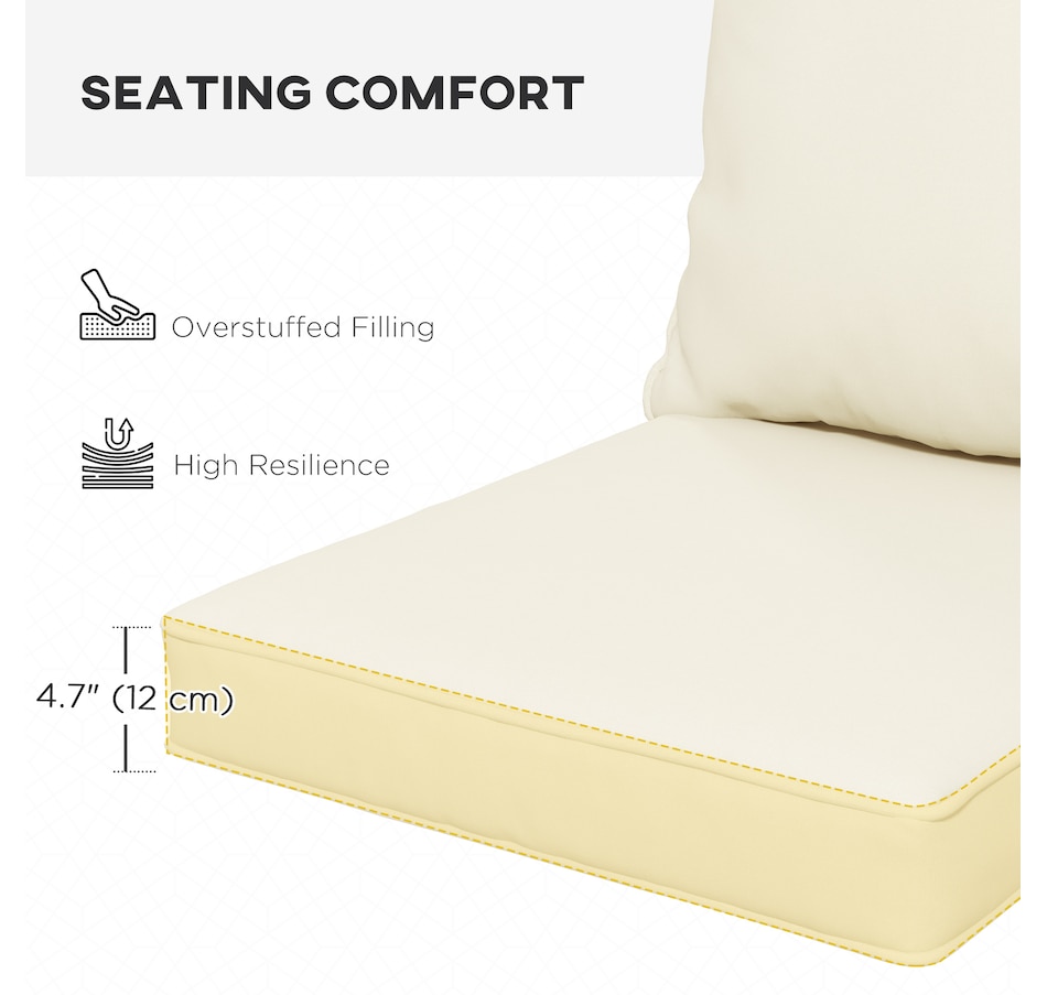The Outsunny lawn chair cushions set is a helpful accessory for anyone looking to enhance the outdoor seating experience. It not only provides enhanced comfort but also adds a touch of elegance. Each cushion in the set is expertly crafted with thick filling to ensure maximum comfort and relaxation. Comfort and style in your garden the easy way. Our outdoor seat cushions are great for refreshing your home instantly.Features: