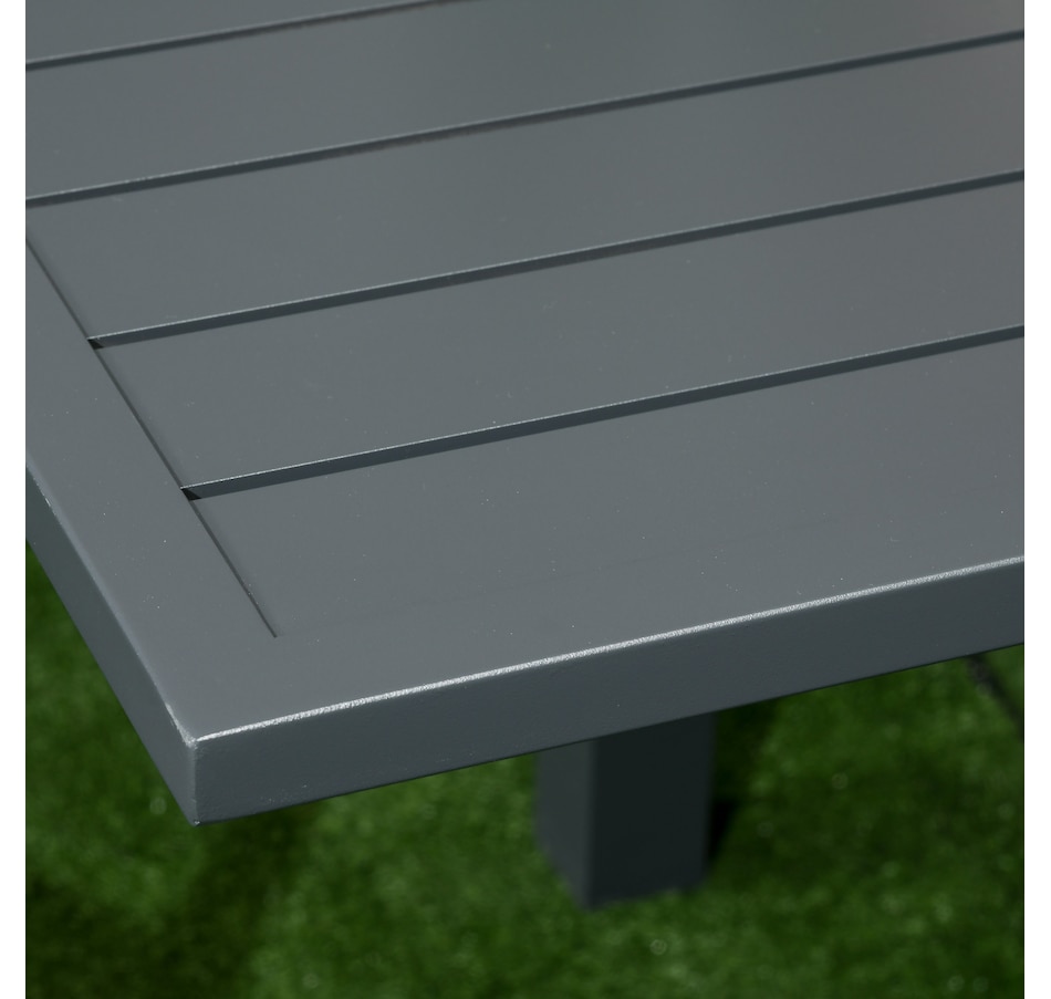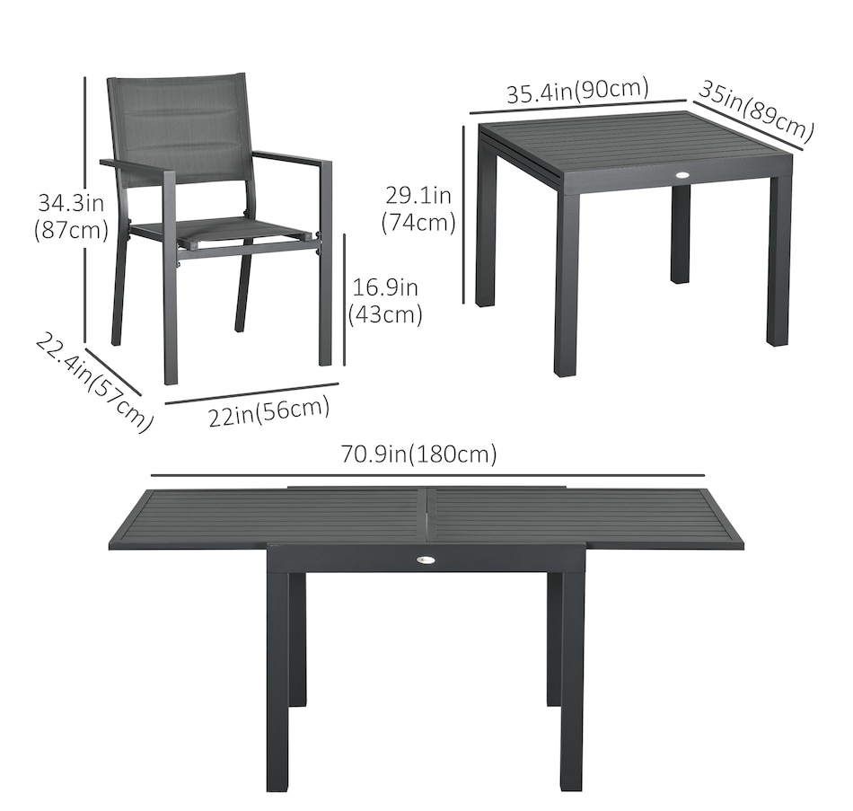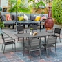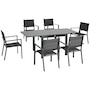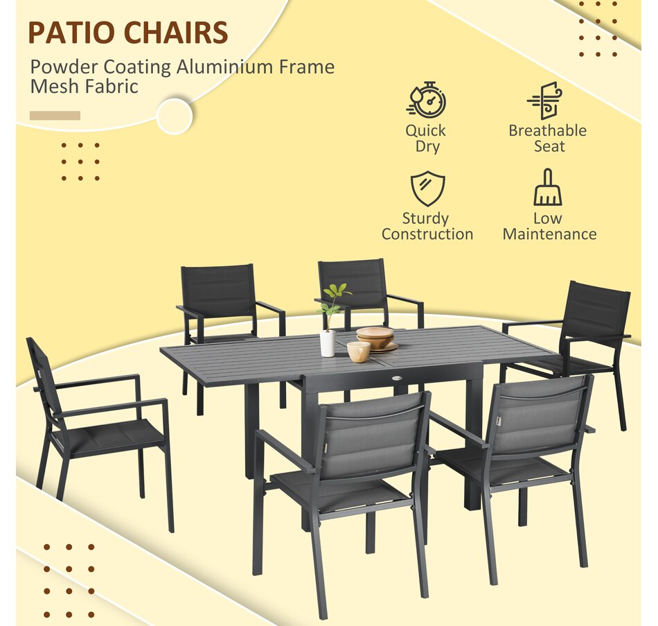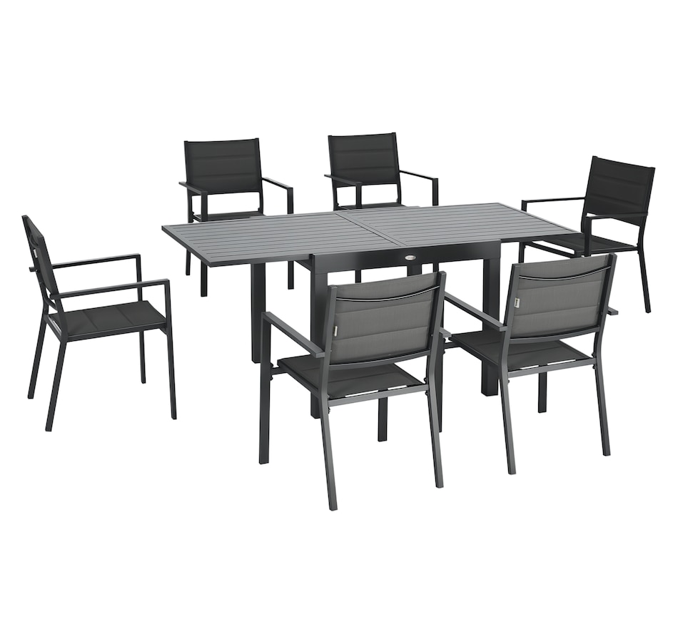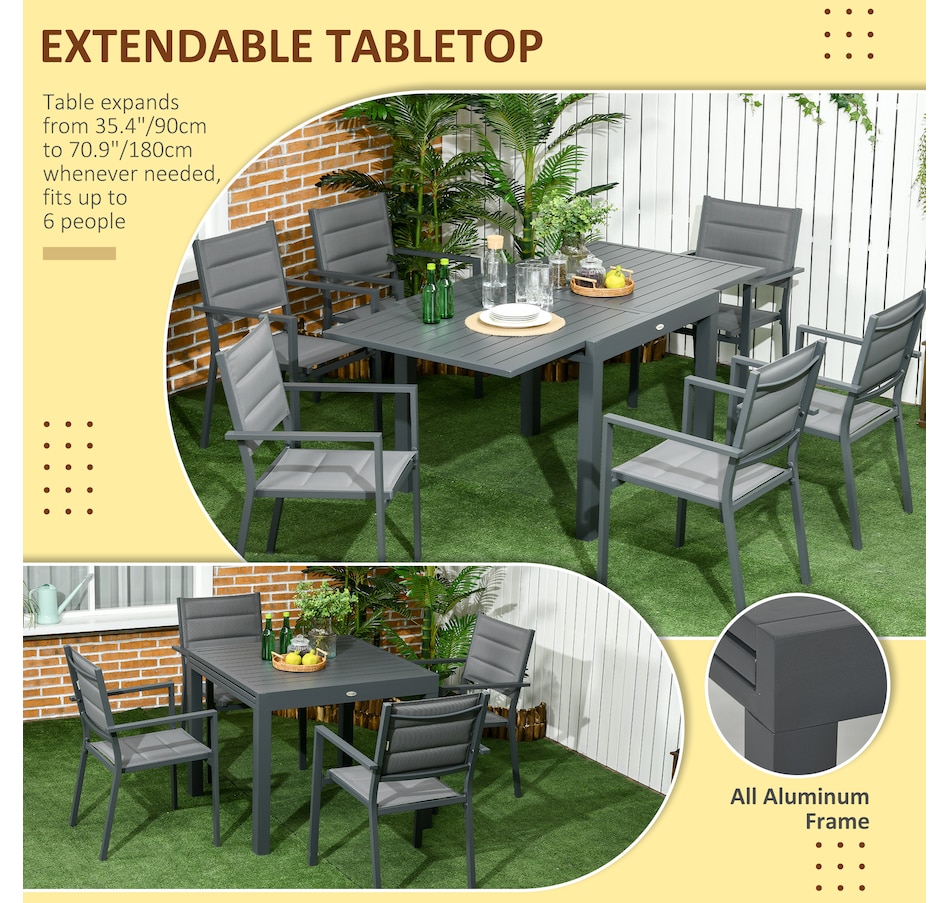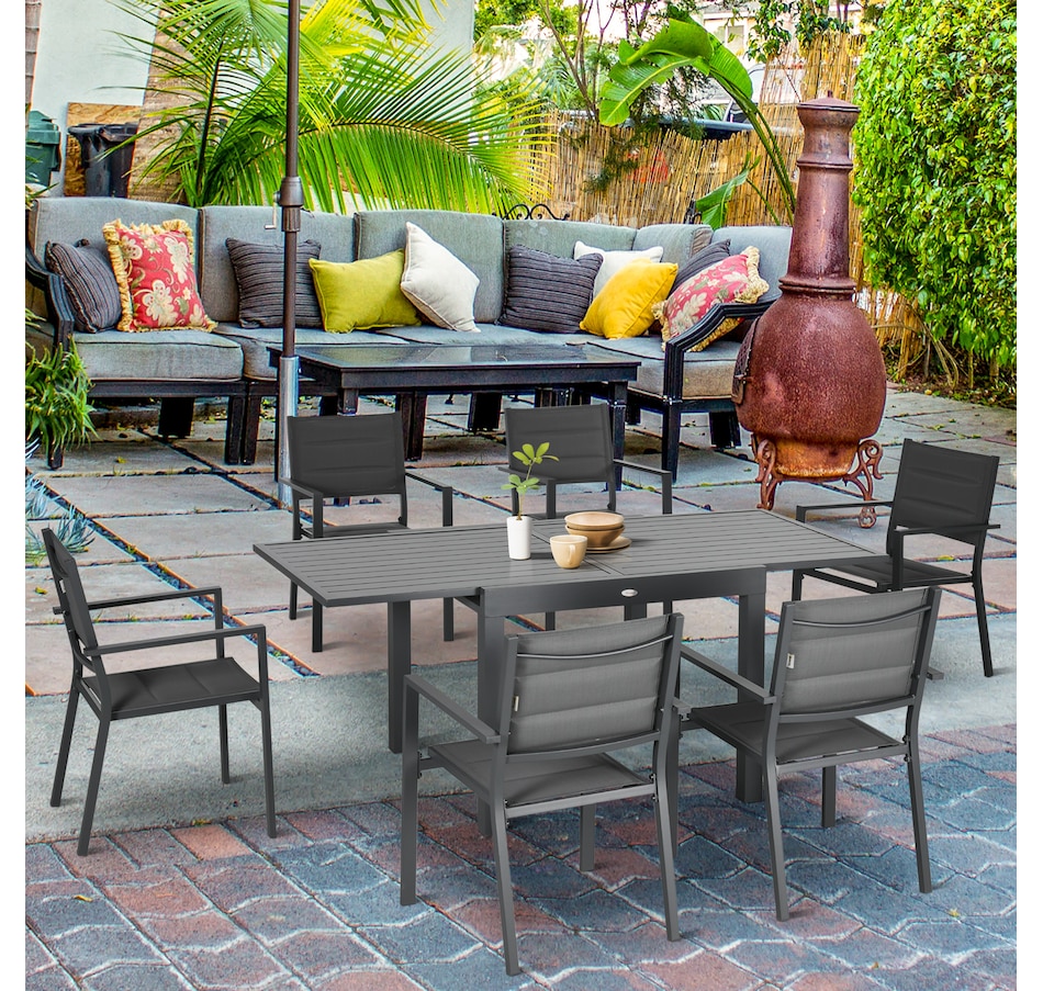 Patio Dining Set, Expandable Table, 6 Stackable Chairs, Dark Grey