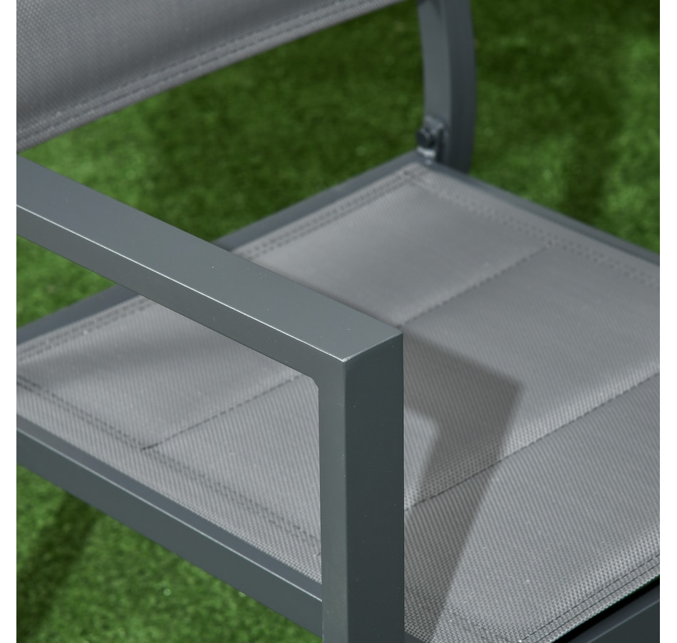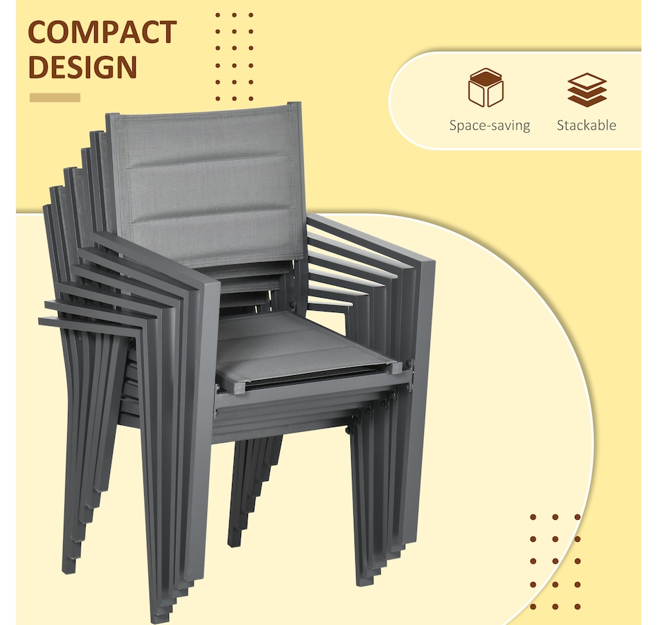 Whether it's for enjoying your weekend brunch, evening dinner or catching up with friends as the evening winds down, let this patio dining set for 6 people from Outsunny be the place to do it all from. Using aluminum for the frames of the six chairs and matching tall table, this outdoor patio furniture set is tough, with mesh fabric on the chairs to allow your skin to breathe so you can sit comfortably. A great all-rounder outdoor table and chairs set for the summer days and nights.