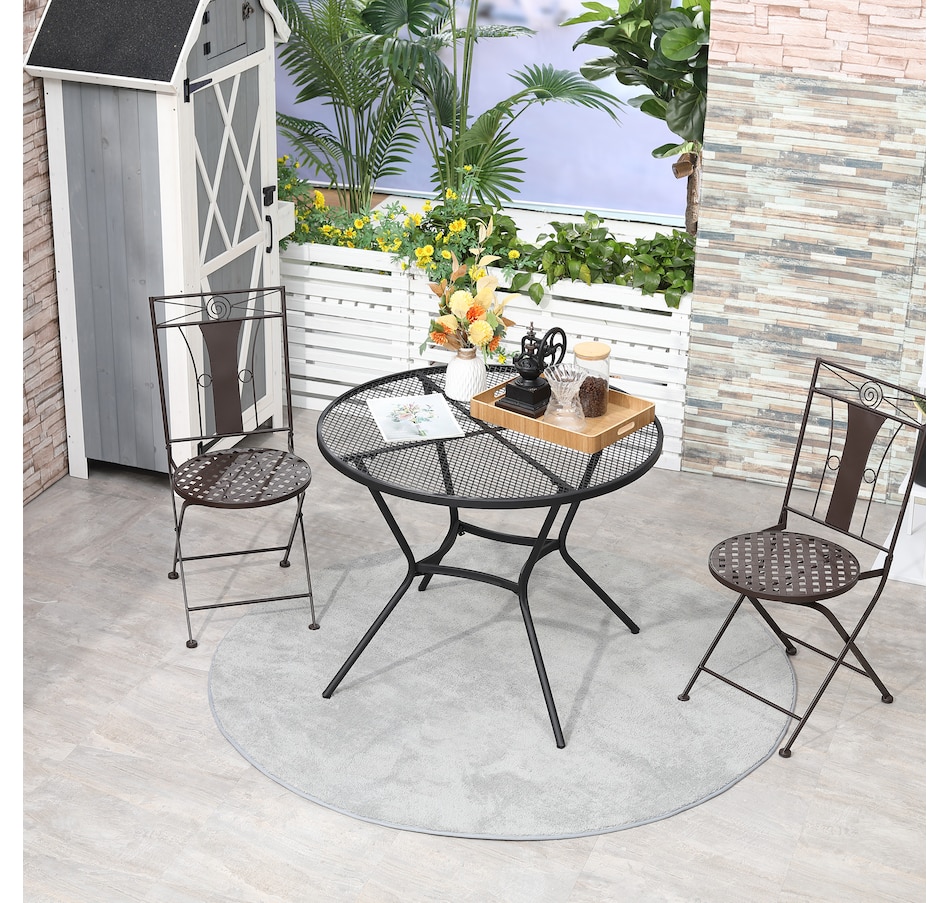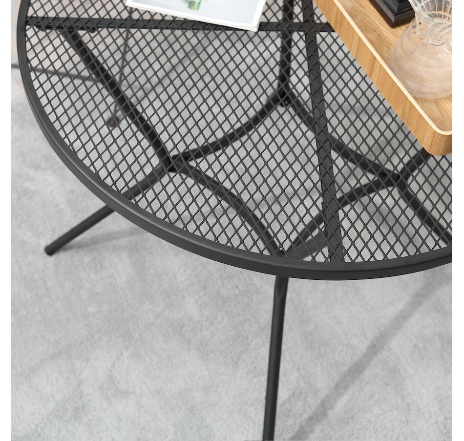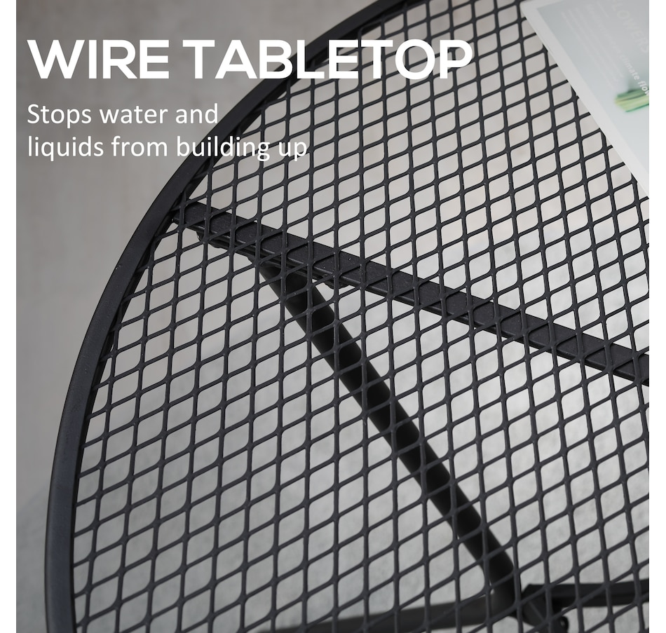 Simple in style, this round outdoor dining table from Outsunny is suitable for matching various chairs and different outdoor scenes. The electrophoretic and powder coating ensure its sturdiness and durability, you no longer have the trouble of frequent table changes. The mesh tabletop prevents liquid residue, and the adjustable foot pads meet the needs of uneven areas. With such a perfect metal patio table, you can fully enjoy your summer relaxing time with your family and your friends.Features: