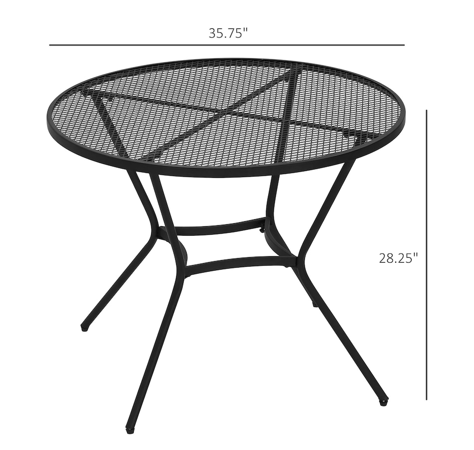 Patio Dining Table, 35" Round Outdoor Table with Mesh Top, Black