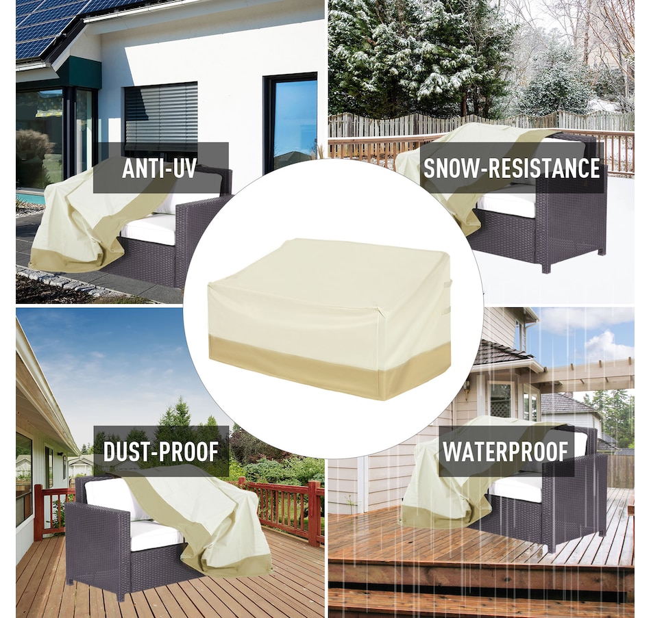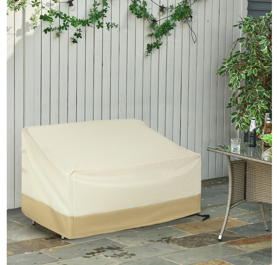 This Outsunny patio covers for outdoor furniture is just what you need to protect your outdoor settings. This furniture cover can cover a normal size 3-seater chairs or bench from rain, snow, dust and any other bad weathers. The click-close strap and plastic buckles to secure the patio chair cover in the windy days can stay in place. In addition to its waterproof function, this outdoor chair covers can also be cleaned easily and all you need is a piece of wet cloth to clean it.