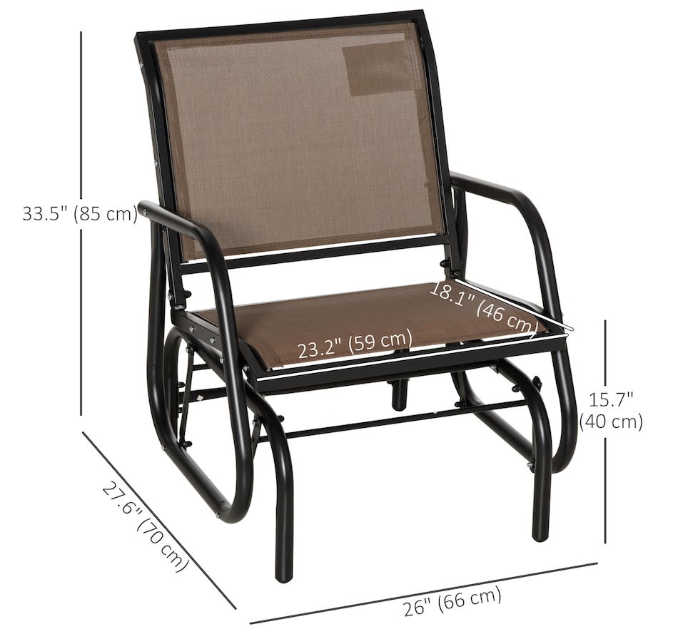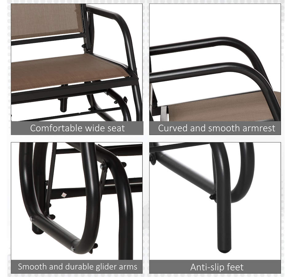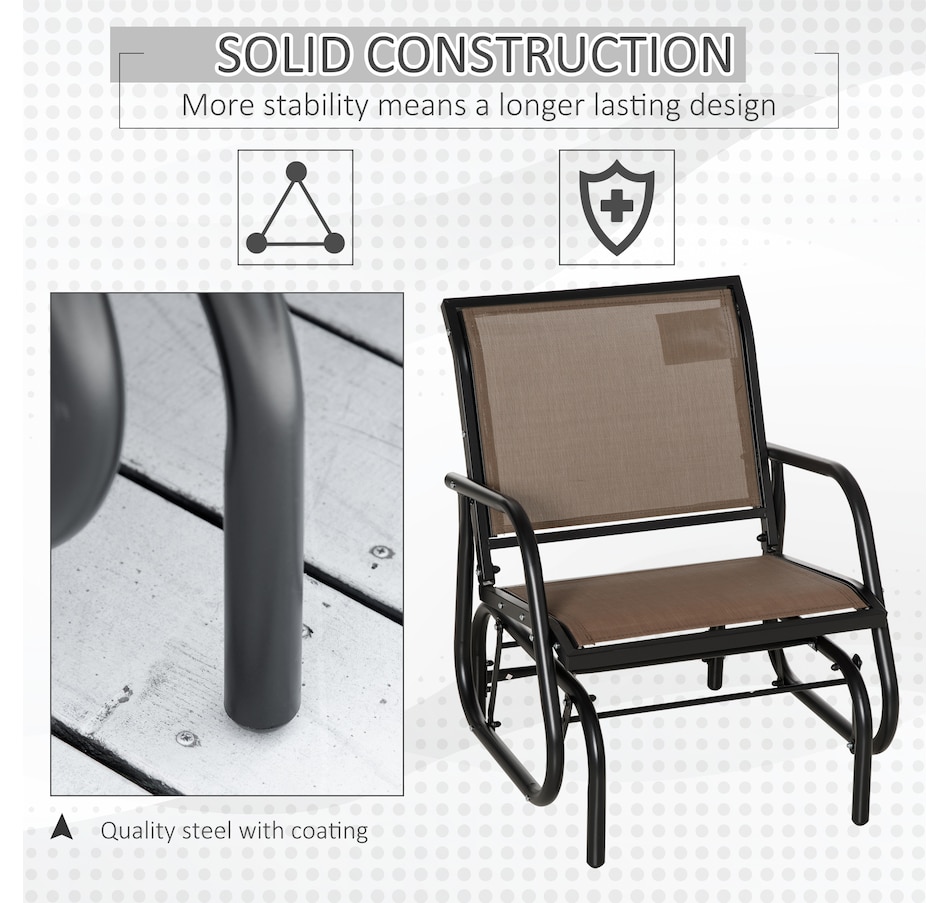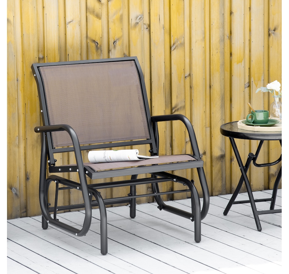 Patio Glider, Metal Frame Outdoor Glider Chair, Brown