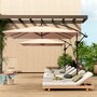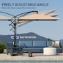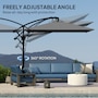 Enjoy premium outdoor relaxation with the Outsunny Patio Offset Parasol, featuring wind ropes and a protective cover for enhanced wind resistance and UV protection. Crafted from fade-resistant polyester and a rustproof frame, the cantilever parasol ensures UPF 50 protection. It offers 360° rotation and adjustable tilt for optimal shade, easily operated with a smooth crank handle.