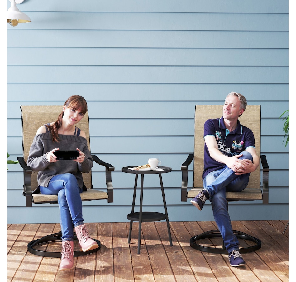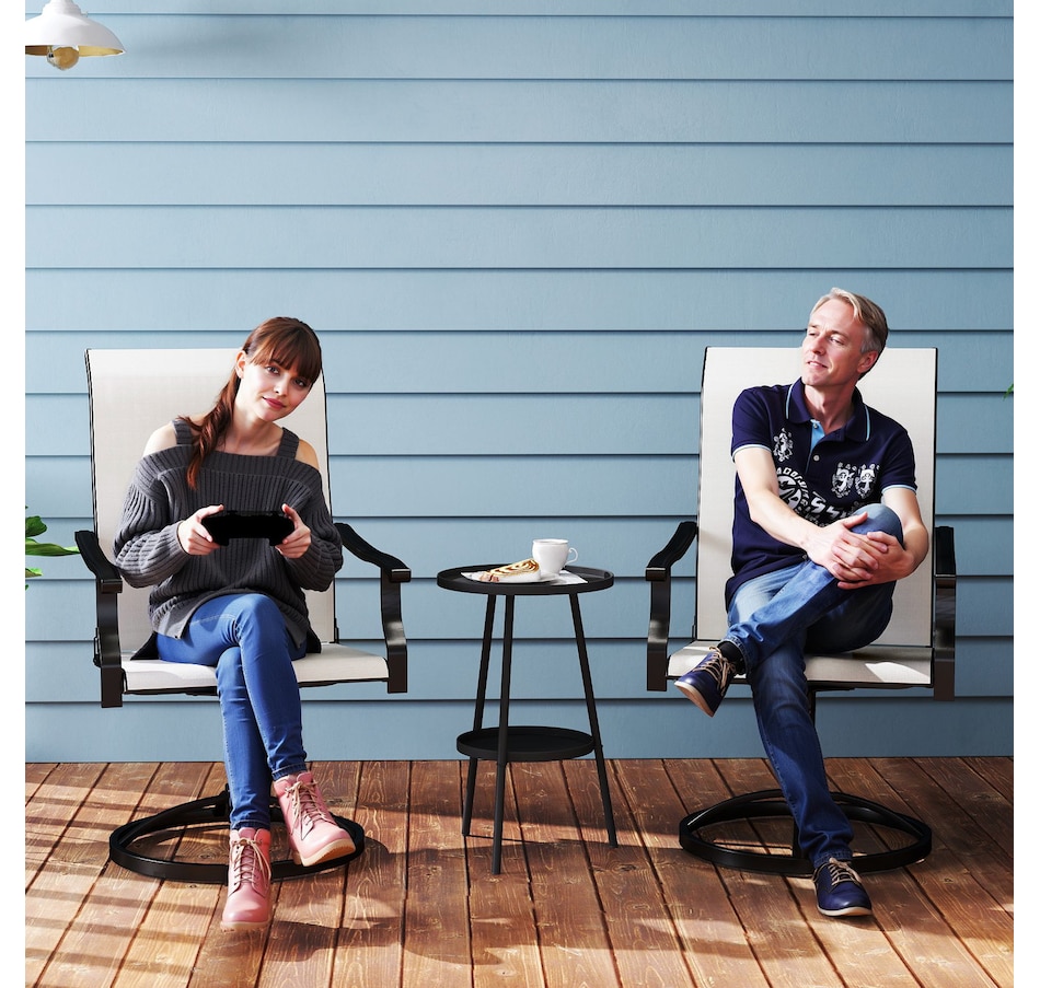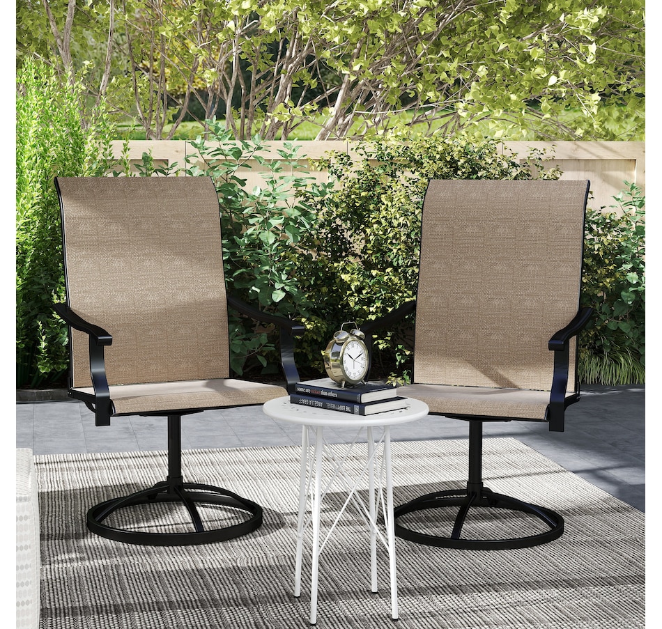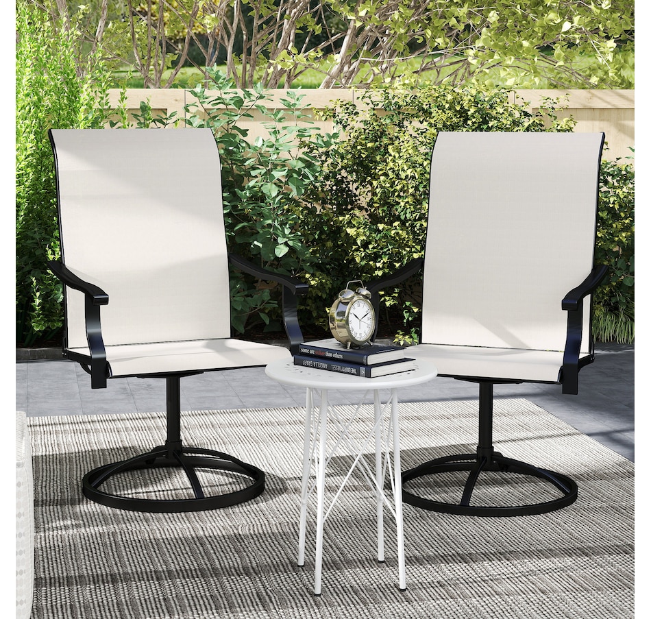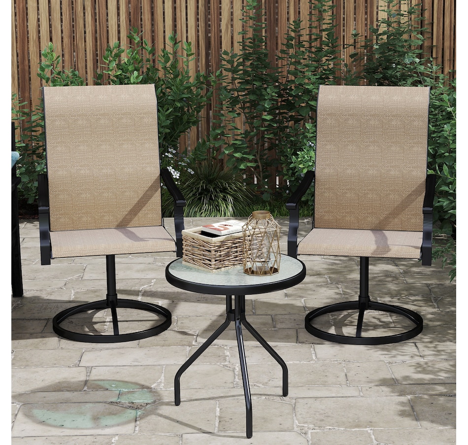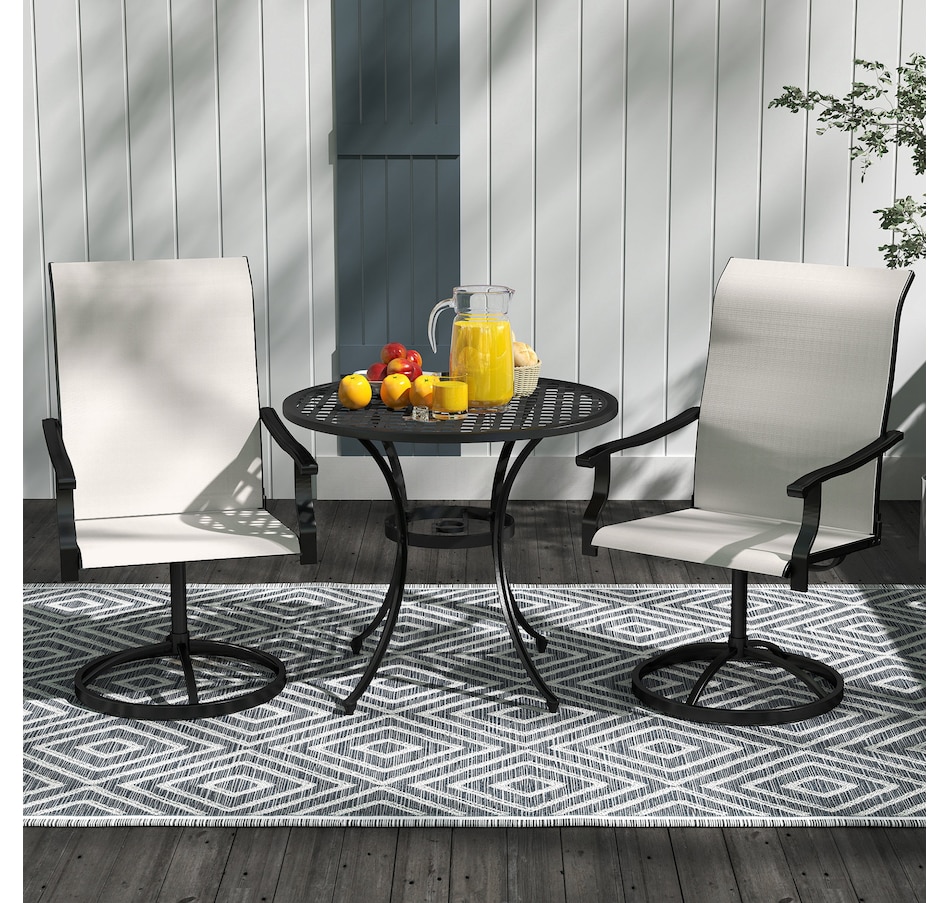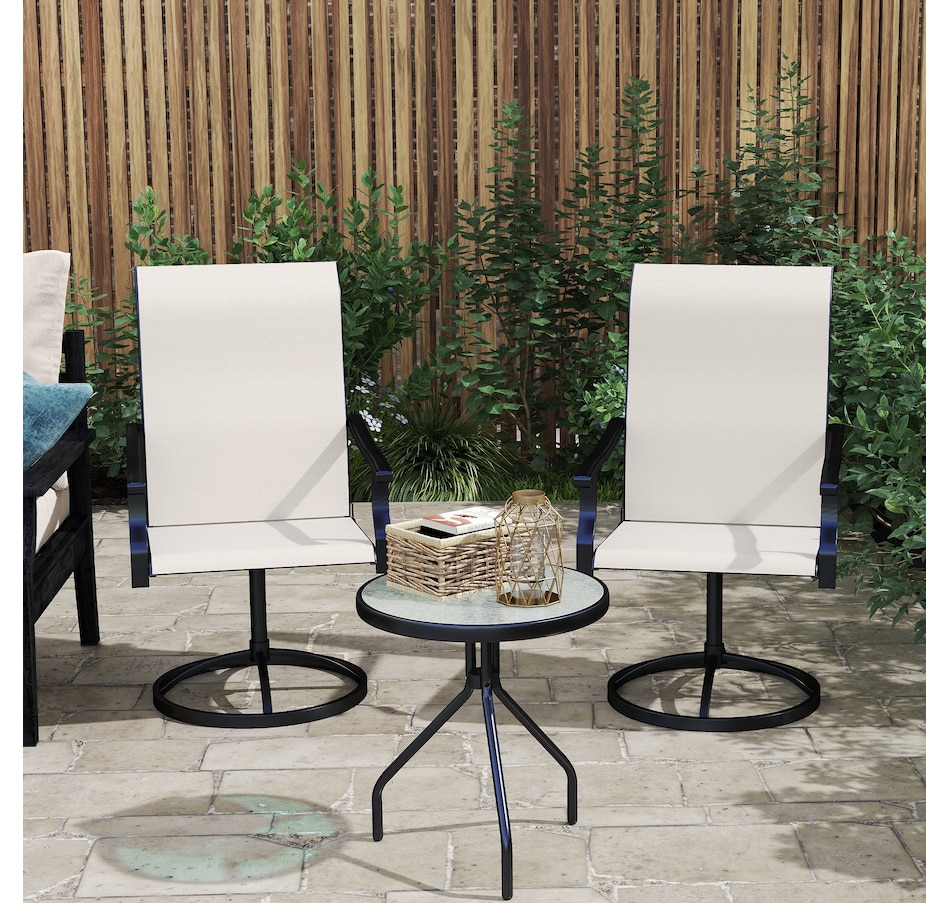 Enjoy the blend of style and function with the Outsunny swivel patio chairs! Featuring a 360° swivel for effortless movement and breathable mesh fabric for cool, all-day comfort, the outdoor chairs will be your new outdoor favorite. Weather-resistant and easy to clean, it's built for patios, porches, or poolside lounging. Relax, chat, or soak up the sun—these outdoor swivel chairs have everything you need for unbeatable outdoor vibes!
