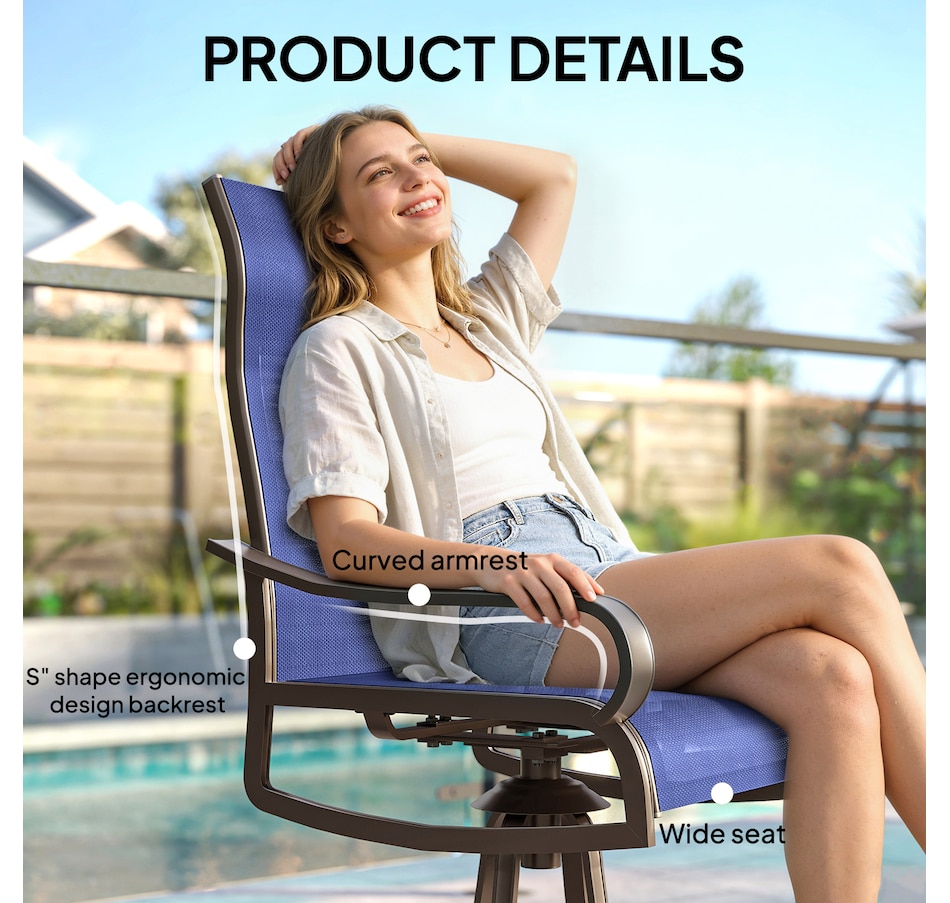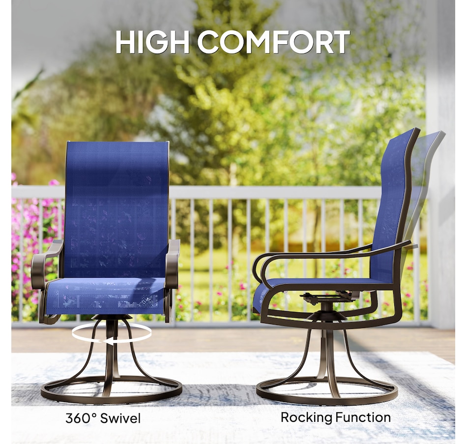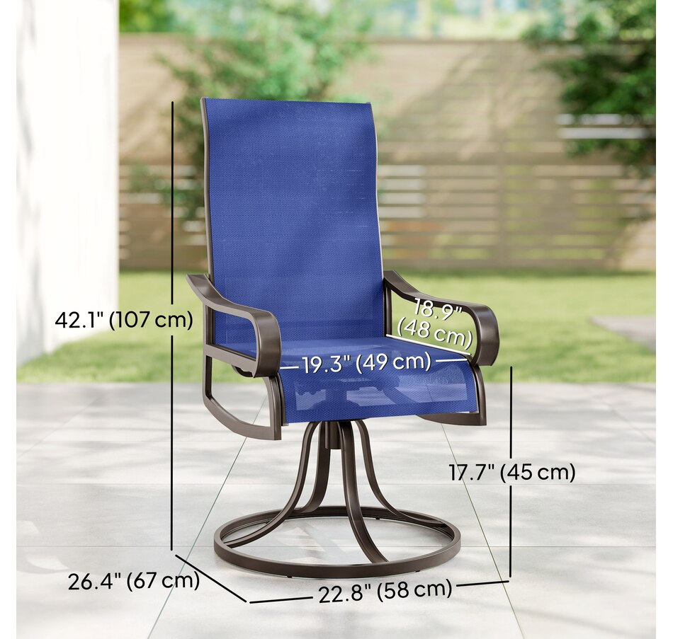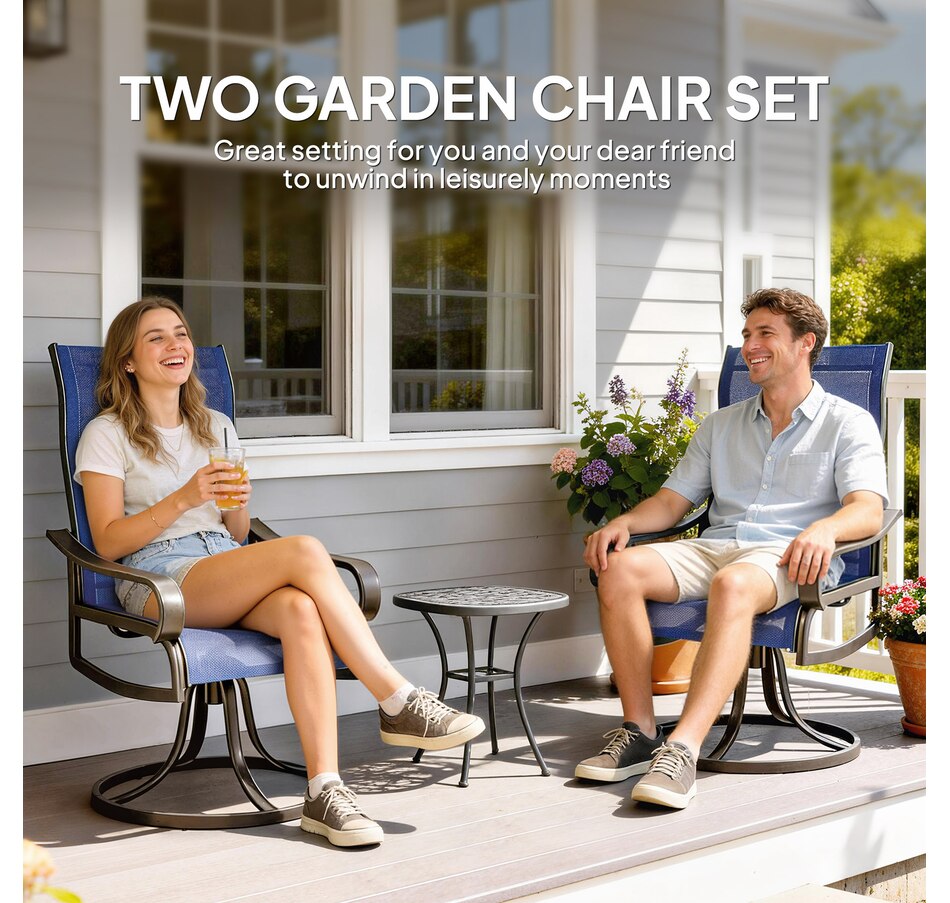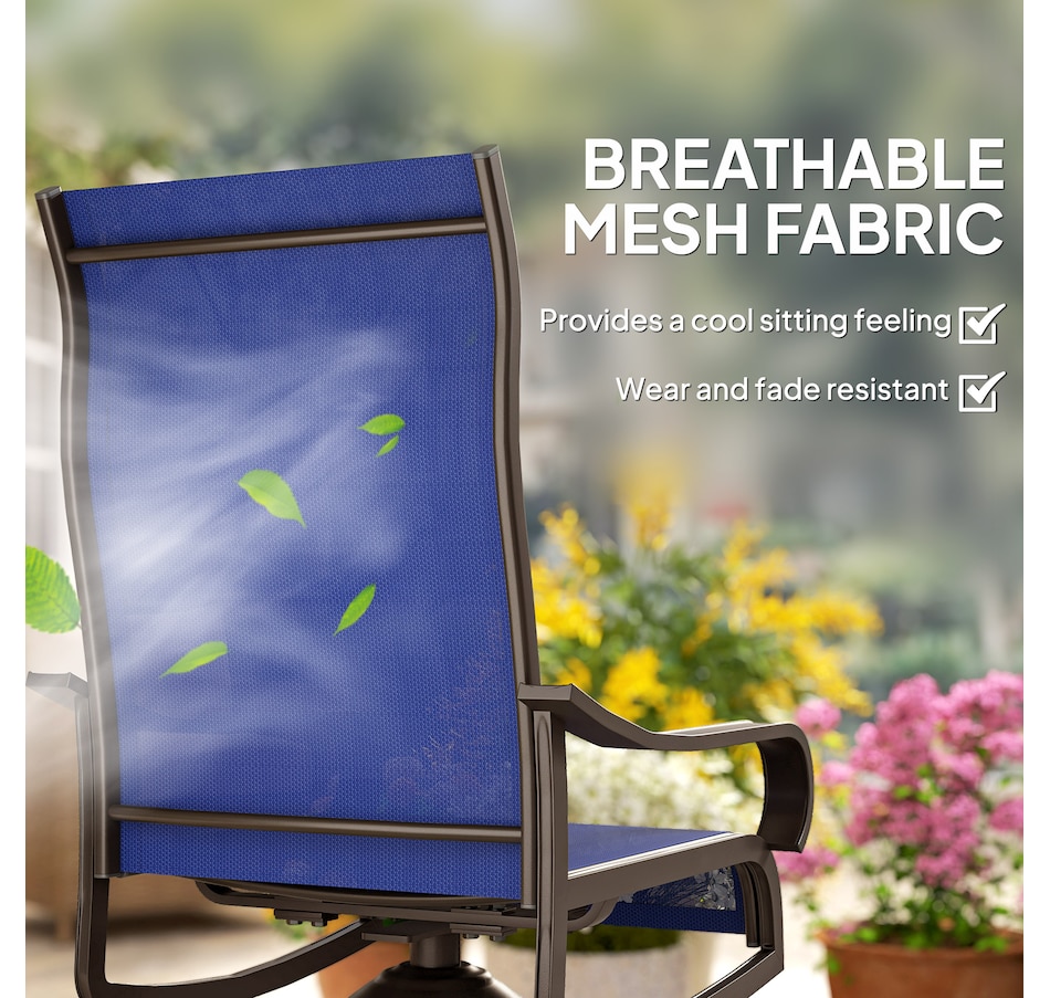 This 2pcs garden chairs from Outsunny are great for backyard drinks and relaxing chats with friends. Featuring a powder coating metal frame with mesh fabric seating area, these chairs have an optimal design for outdoor use. High resilient mesh fabric surface in great breathability covered on bow-shaped base, it can ergonomically fit your body shape and you can enjoy slightly rocking motion in your leisure time. A great addition to any of your existing home decor!