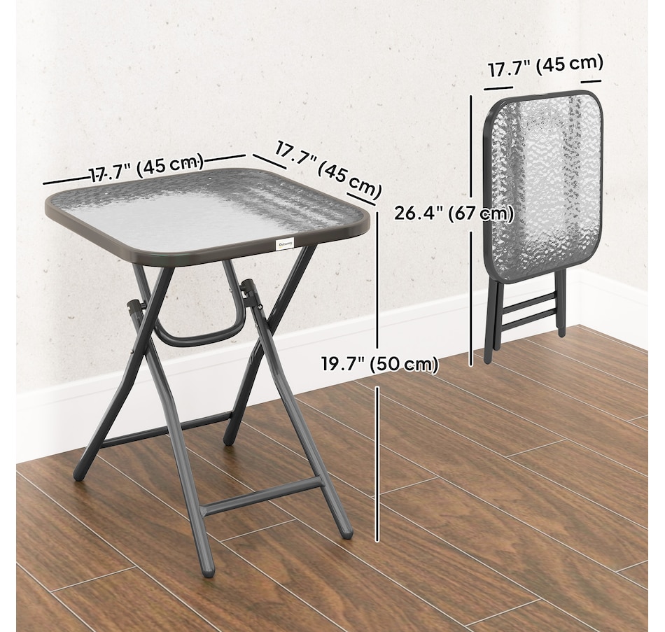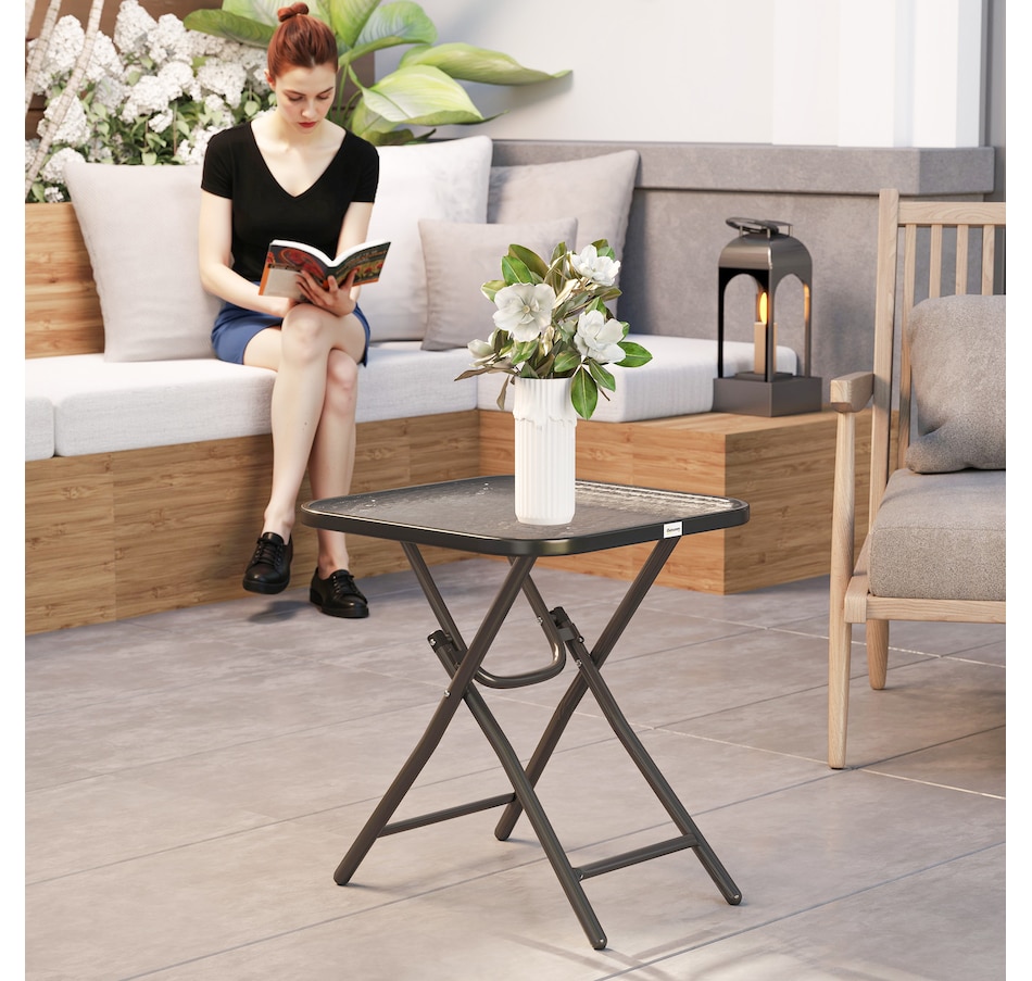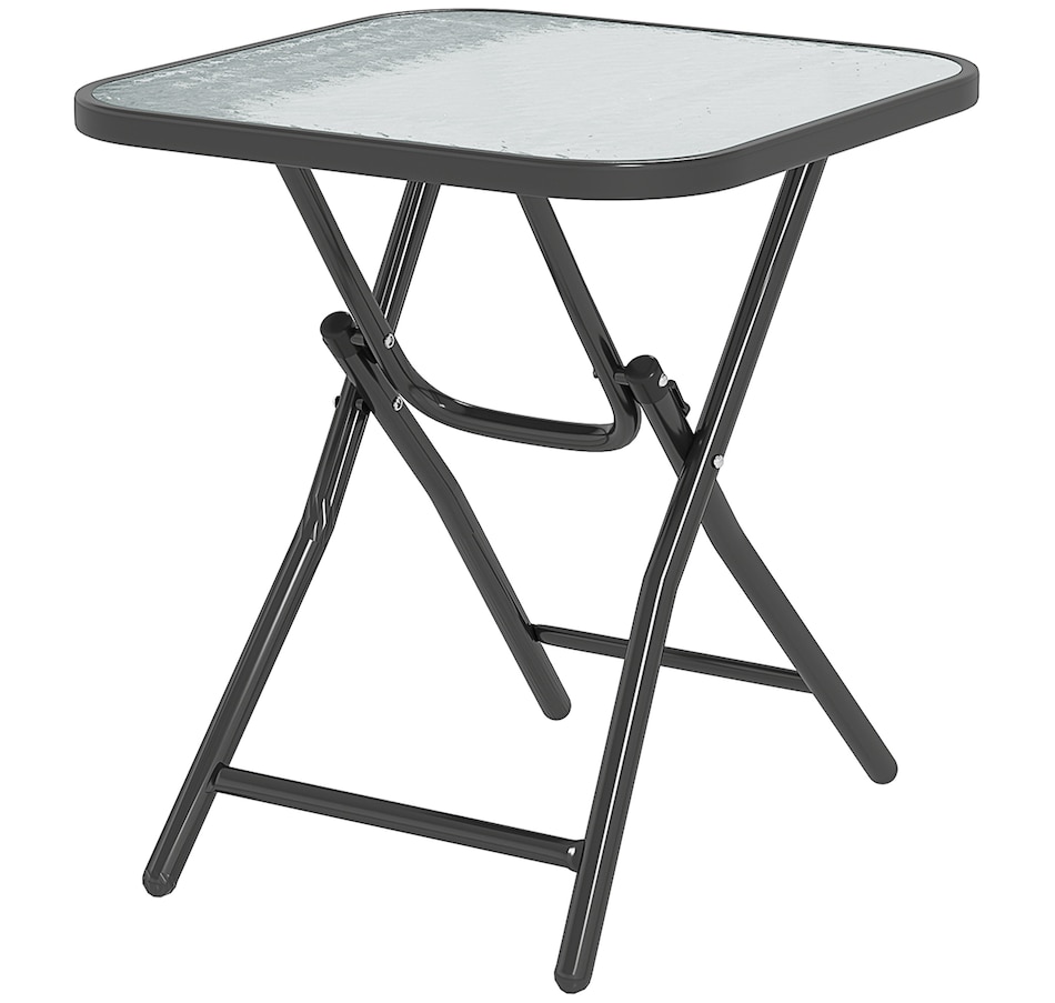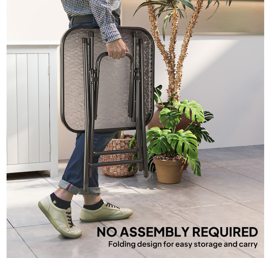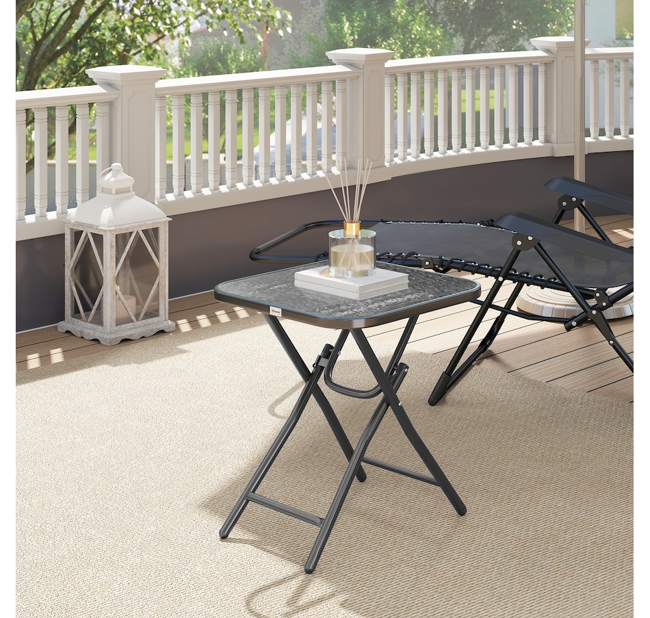 For a unique addition to your garden furniture, choose this beautiful outdoor patio table from Outsunny. Made with a robust and strong metal frame, it features a beautiful water ripple tempered glass table top which is stain resistant and easy to clean. With safety buckle to prevent accidental folding, increasing stability in use. It's suitable for dining and relaxing with friends elegantly all day long.