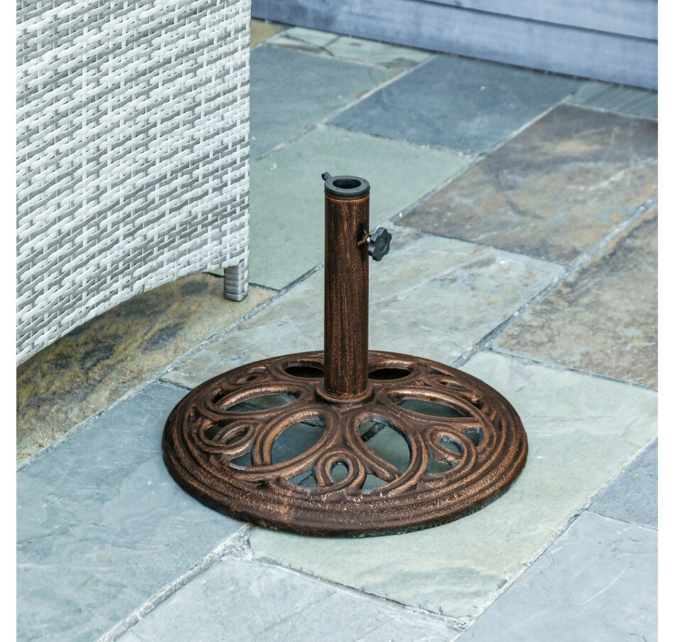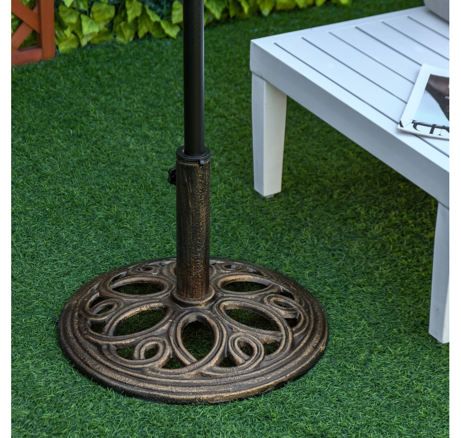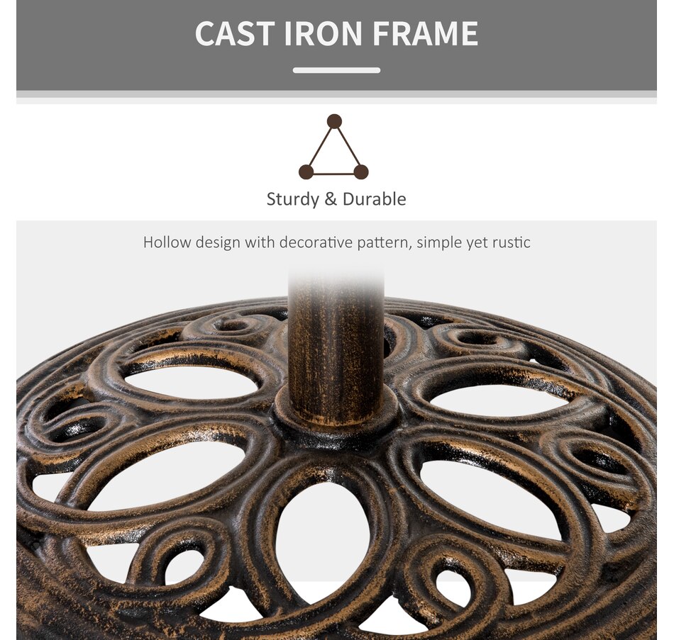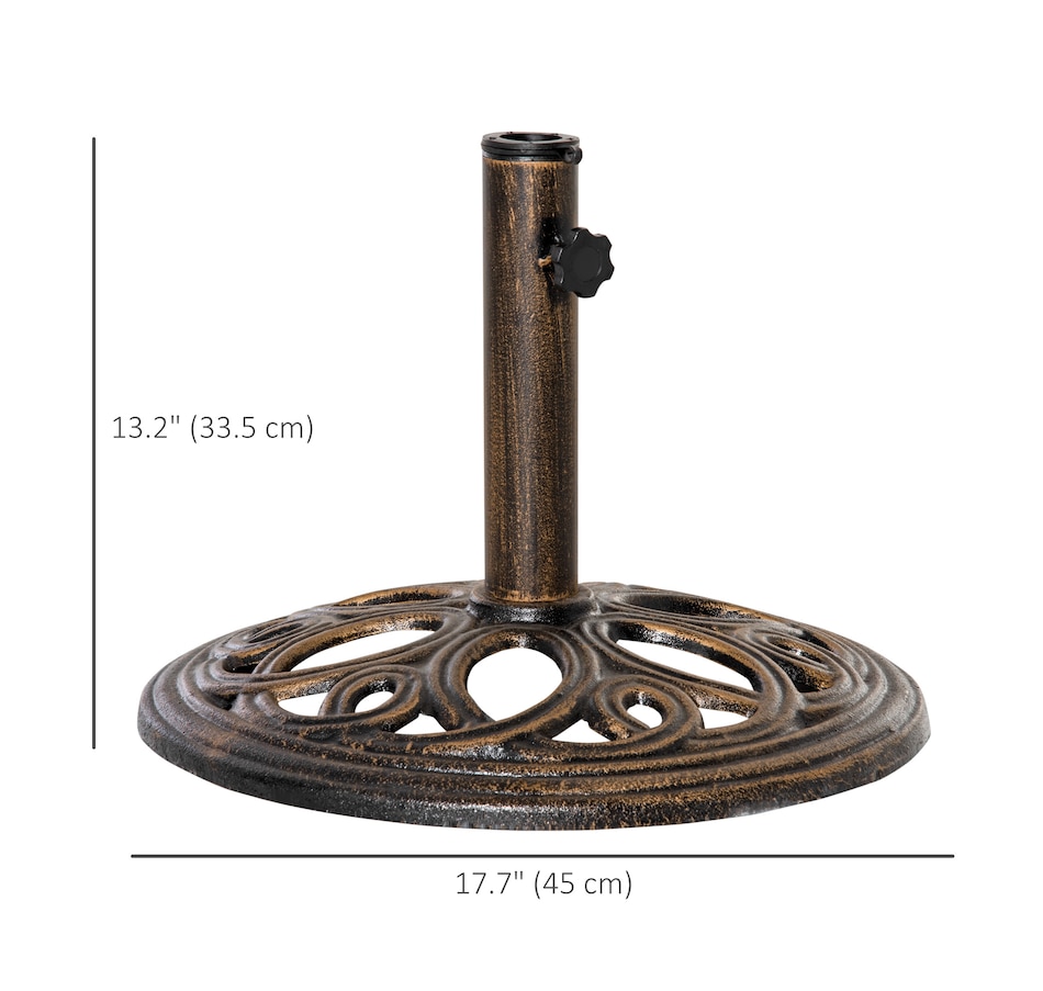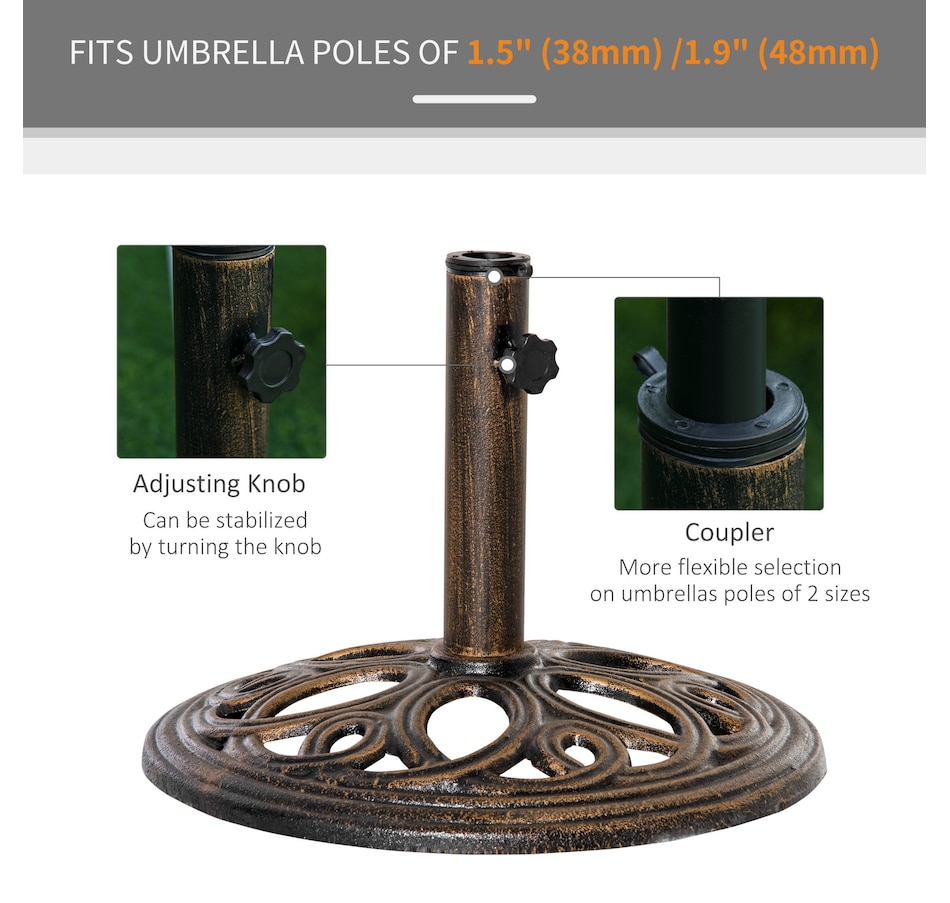 Enjoy the outdoor lifestyle with umbrella stands for outside from Outsunny. The outdoor umbrella base is suitable for umbrella poles with diameters of 1.5" and 2". Made from strong cast iron, no need to fill with water or sand to increase the weight. Whether use this for garden, patio, or poolside, this is the parasol base for you. Simply combine our patio umbrella holder with a beautiful patio umbrella and table, and create your own oasis under some much-needed shade.
