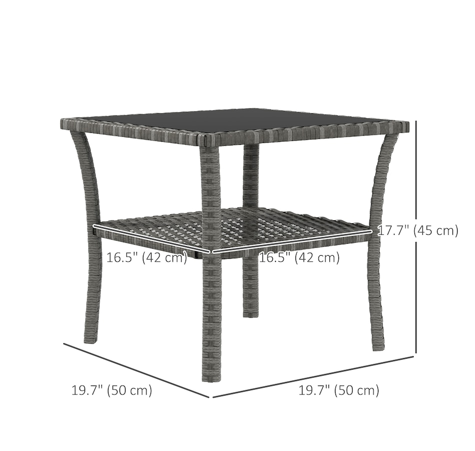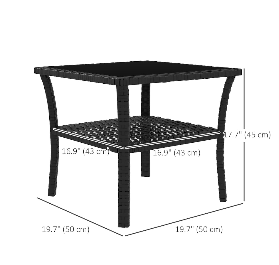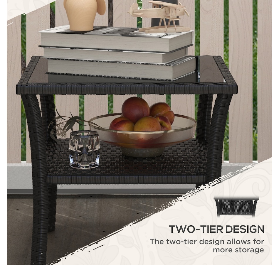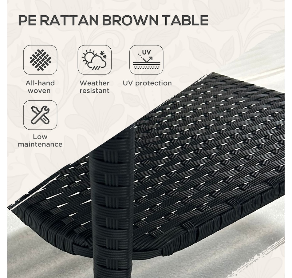Are you looking for a long lasting, easy-to-maintain outdoor table? Bring the rattan table to your backyard from Outsunny. With a steel frame with powder-coate finsih and wrapped all hand woven PE rattan, tempered glass top for easy clean. This table is great for any outdoor space - your backyard, front yard, balcony, garden, or deck. Let this porch table accompany you for enjoyable leisure time.