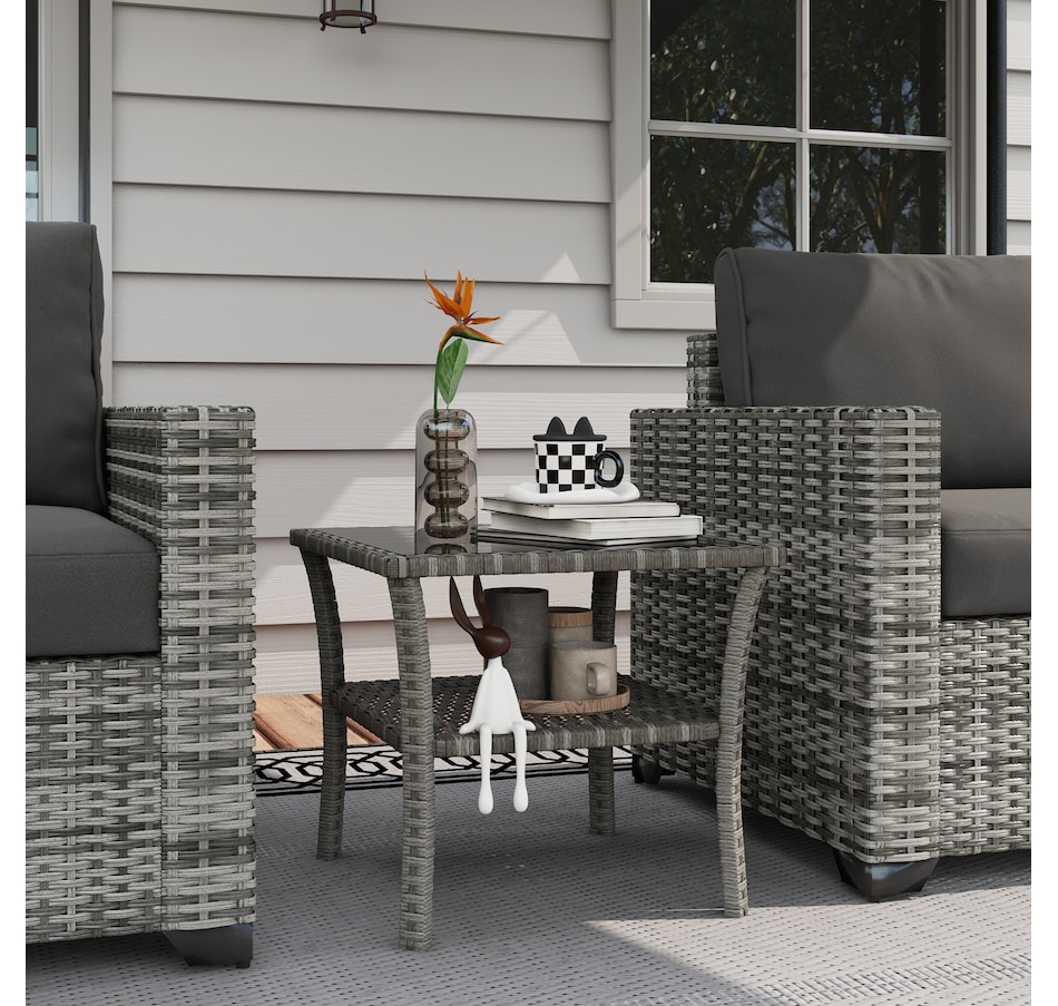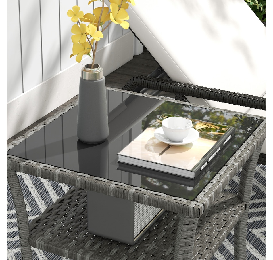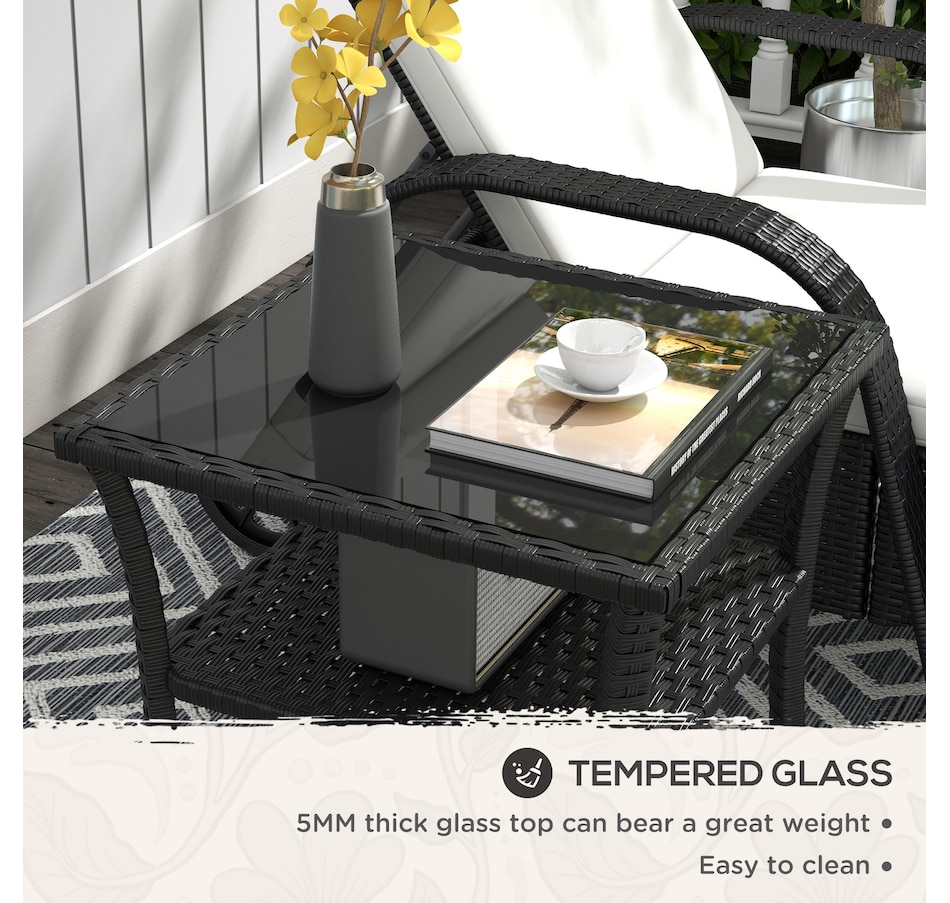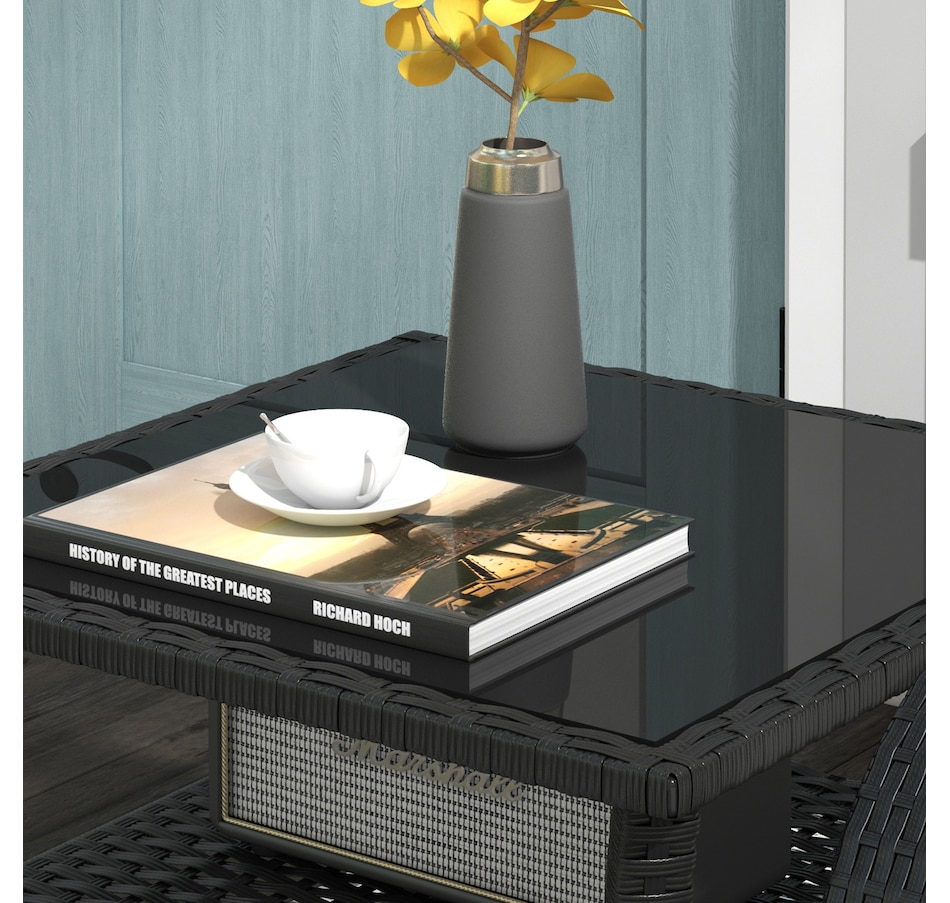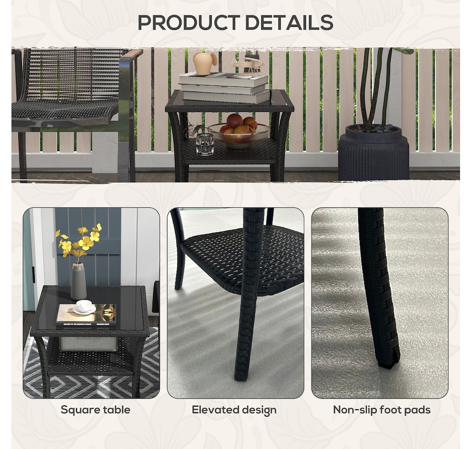 Are you looking for a long lasting, easy-to-maintain outdoor table? Bring the rattan table to your backyard from Outsunny. With a steel frame with powder-coate finsih and wrapped all hand woven PE rattan, tempered glass top for easy clean. This table is great for any outdoor space - your backyard, front yard, balcony, garden, or deck. Let this porch table accompany you for enjoyable leisure time.