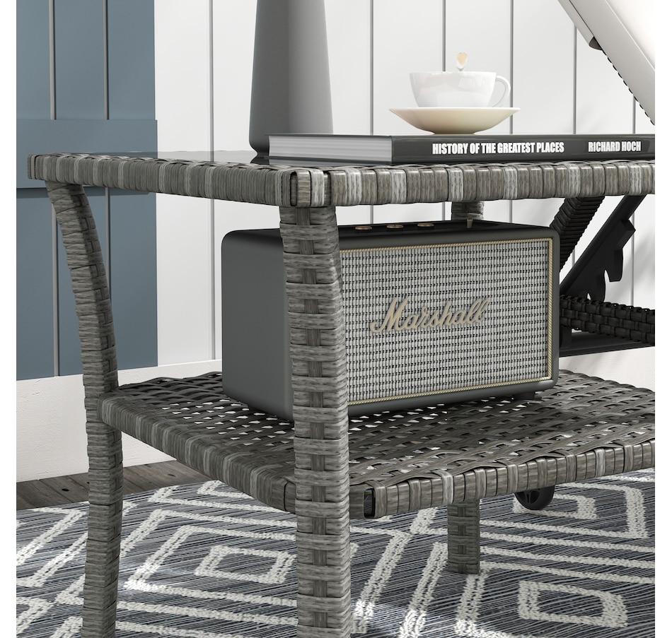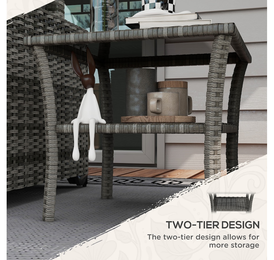 Patio Wicker Coffee Table w/ Two-tier Design, Side Table, Grey
