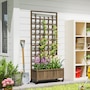Planter with Trellis, Raised Garden Bed with Wheels, Brown