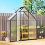 This outdoor greenhouse blends durability and functionality for thriving plants! Its rust-resistant aluminium frame jointed by retractable buckles offers enhanced stability and easier assembly. UV resistant polycarbonate panels allow light transmission while retaining heat. The swing door offers enhanced sealing and insulation. Adjustable window regulates temperature and airflow. This greenhouse is great for year-round gardening!
