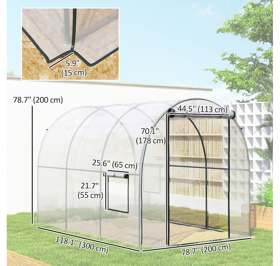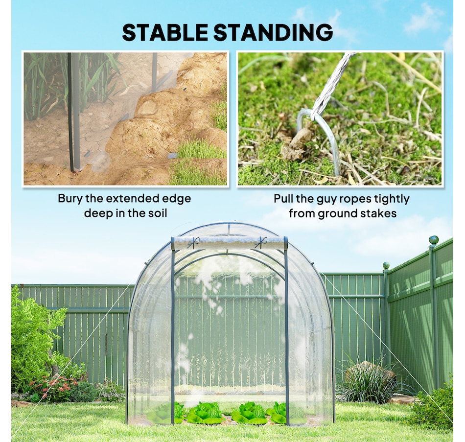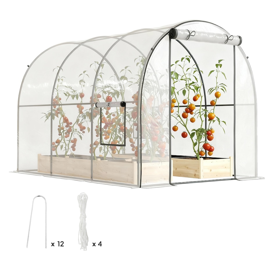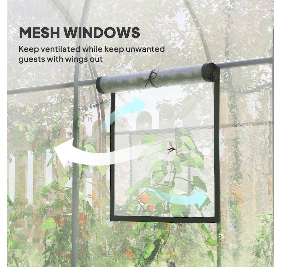 Polytunnel Greenhouse with Mesh Window, Grow House Tent, Clear