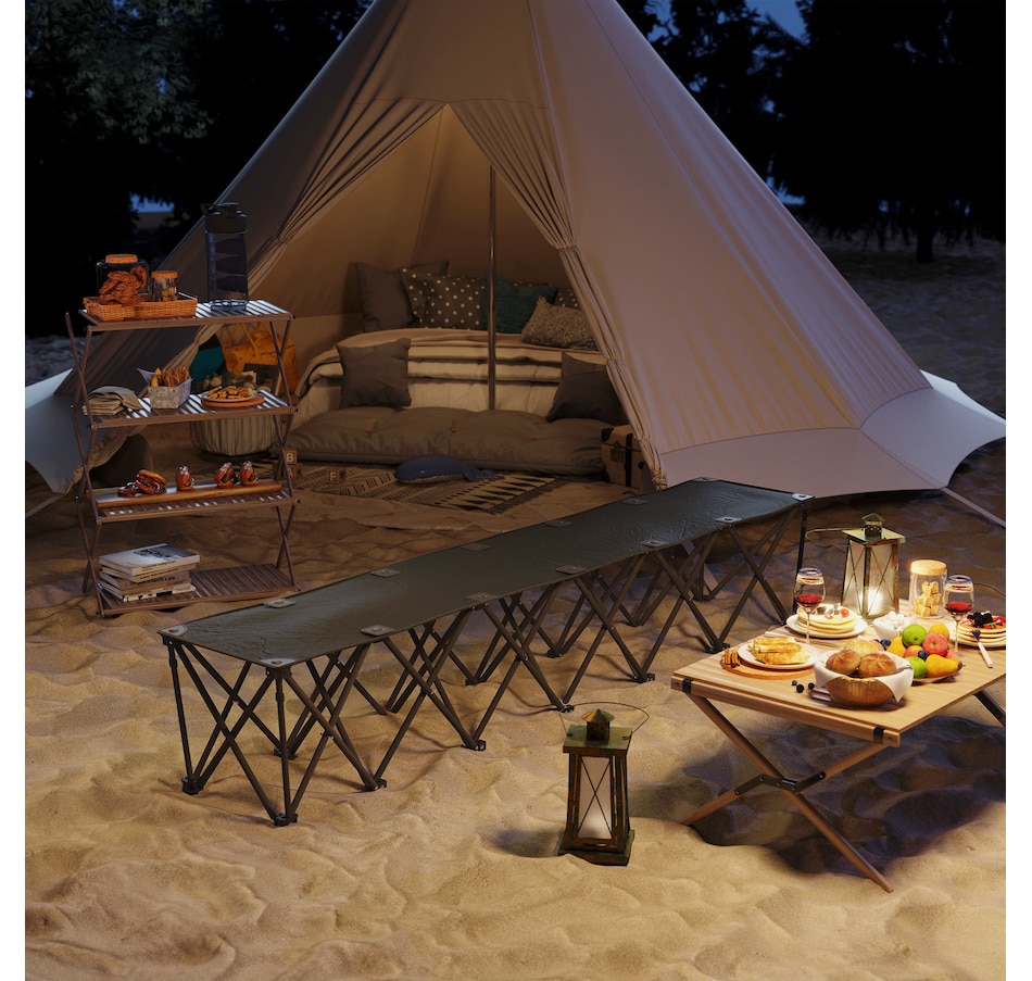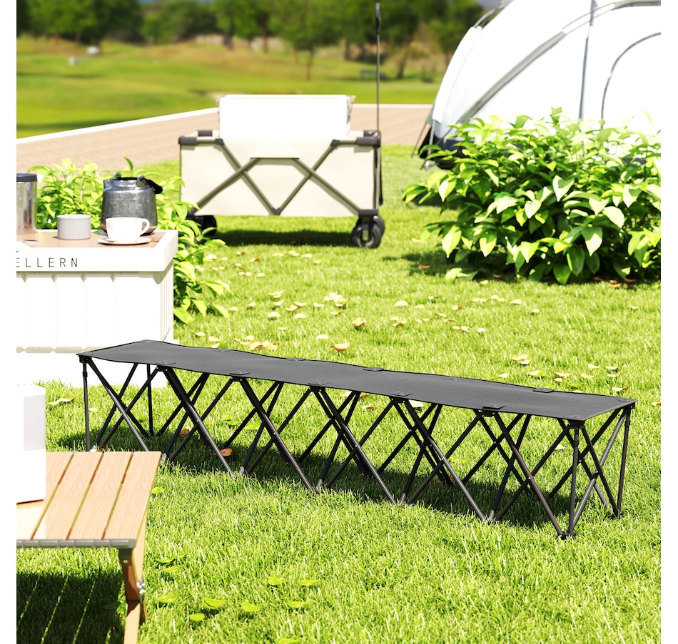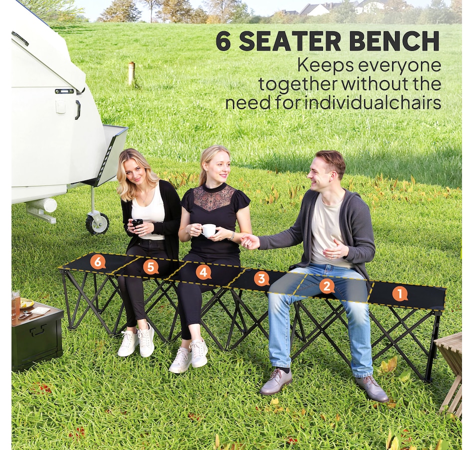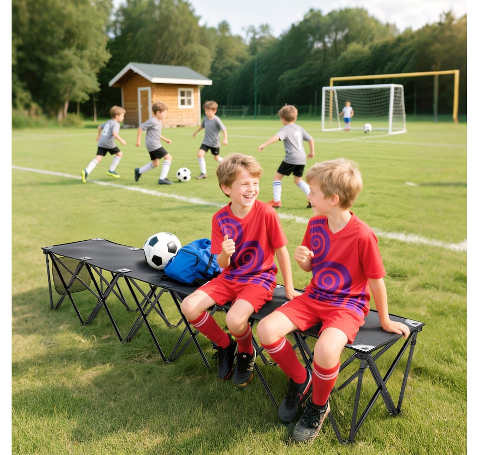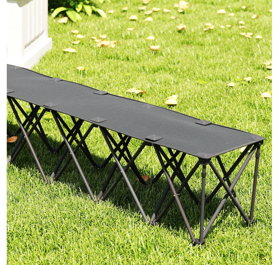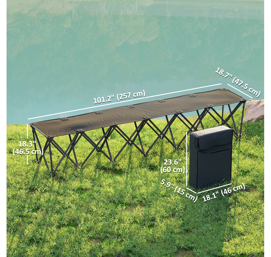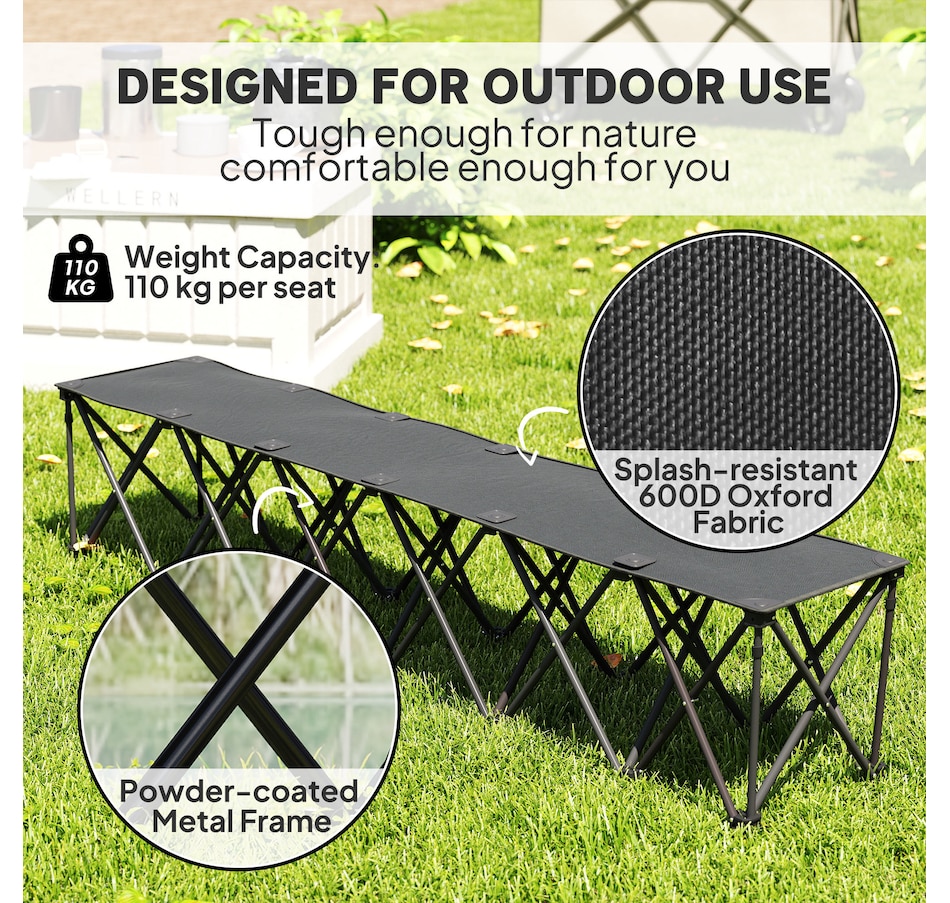 Discover the convenience of the Outsunny portable bench, a seamless blend of comfort and mobility. Designed for six, this folding team sports sideline bench pops open in seconds. Crafted with a powder-coated frame and splash-resistant 600D Oxford fabric, the outdoor chair supports up to 243 lbs (110 kg) per seat. Suitable for sports events, travel, and camping, it's the greatest camp chair that brings the team together!Features: