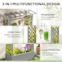 Transform your garden into a lush oasis with the Outsunny wood planter box! It features a spacious hanging roof for extra growing room, decorative string lights, and dual side trellises, which are great for climbing plants. This planter box with trellis ensures healthy plant growth with its efficient drainage system and robust, all-weather painted wood construction. Elevate your gardening game today!Features: