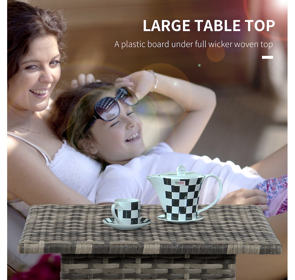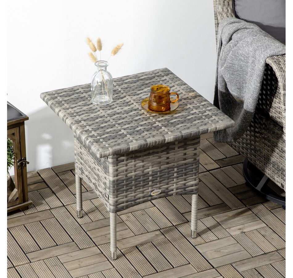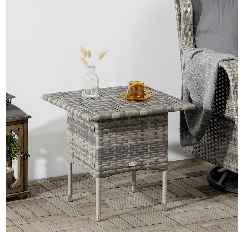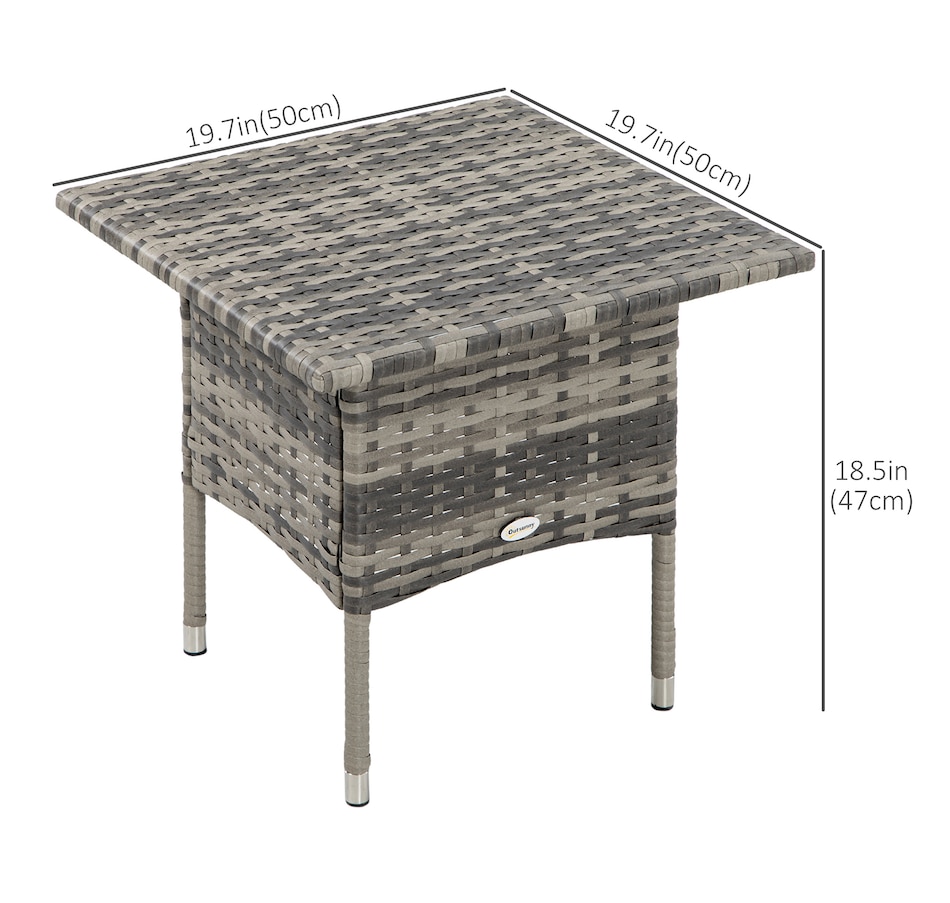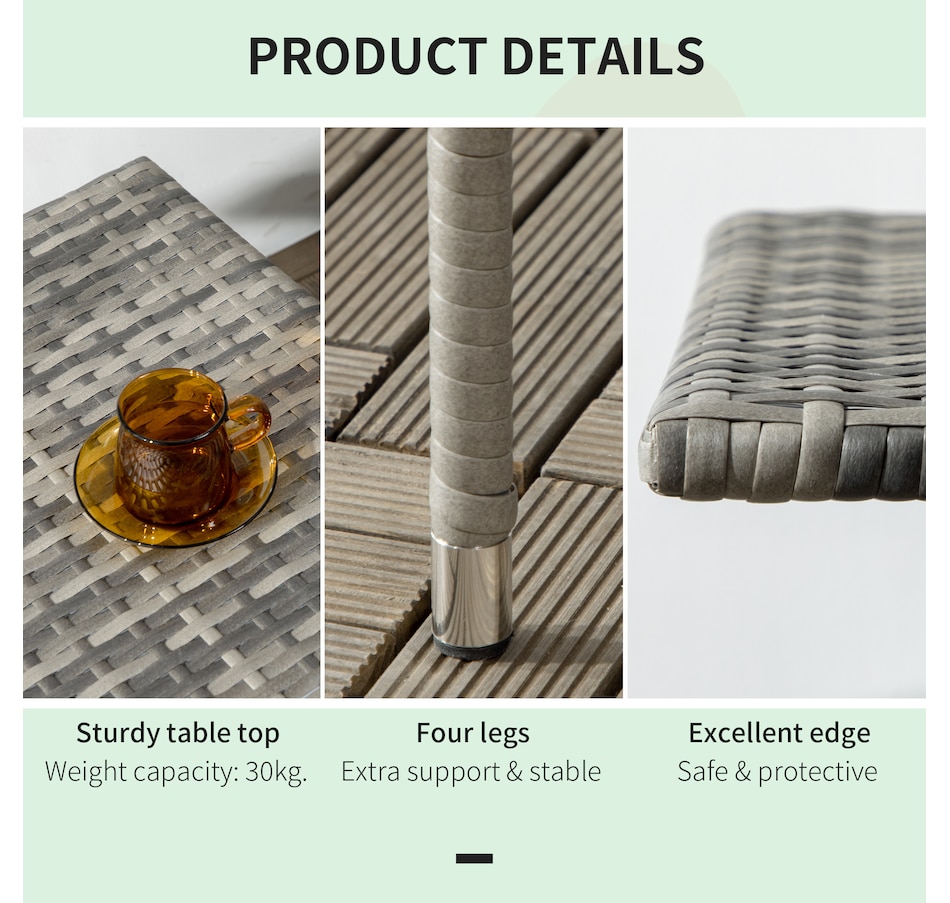 Rattan End Table with Full Woven Top, Outdoor Coffee Table, Grey