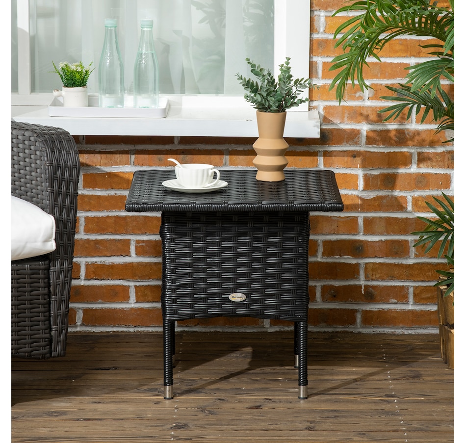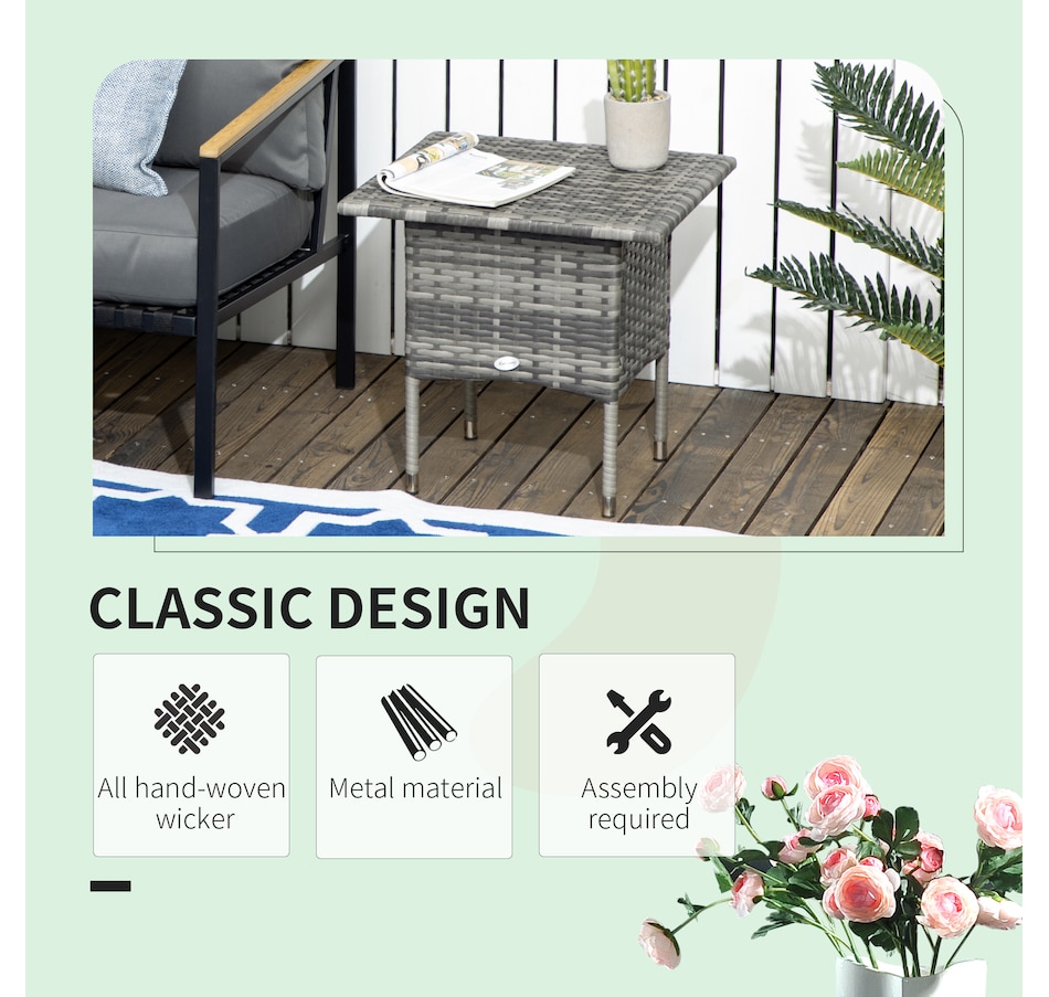 Compact tables may be small, but they are versatile and essential pieces of furniture. Enhance your home with this modern side table from Outsunny, which is suitable for outdoor use. Crafted with a metal frame that provides stability without sacrificing portability, it can be utilized as a coffee table, bar trolley, plant stand, or any other capacity you require, highlighting its adaptability.