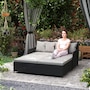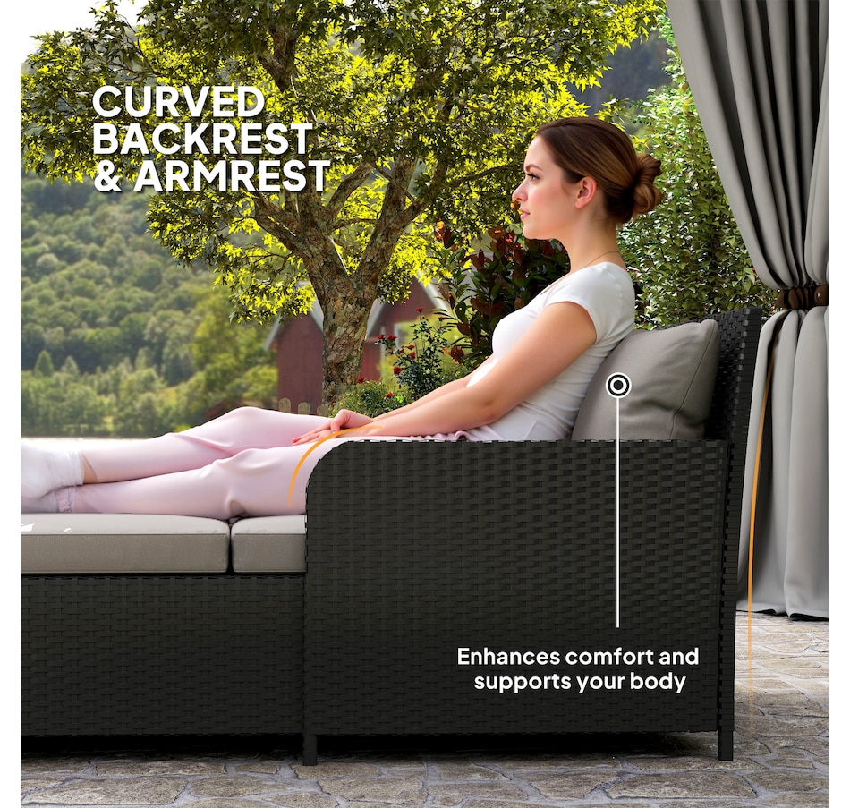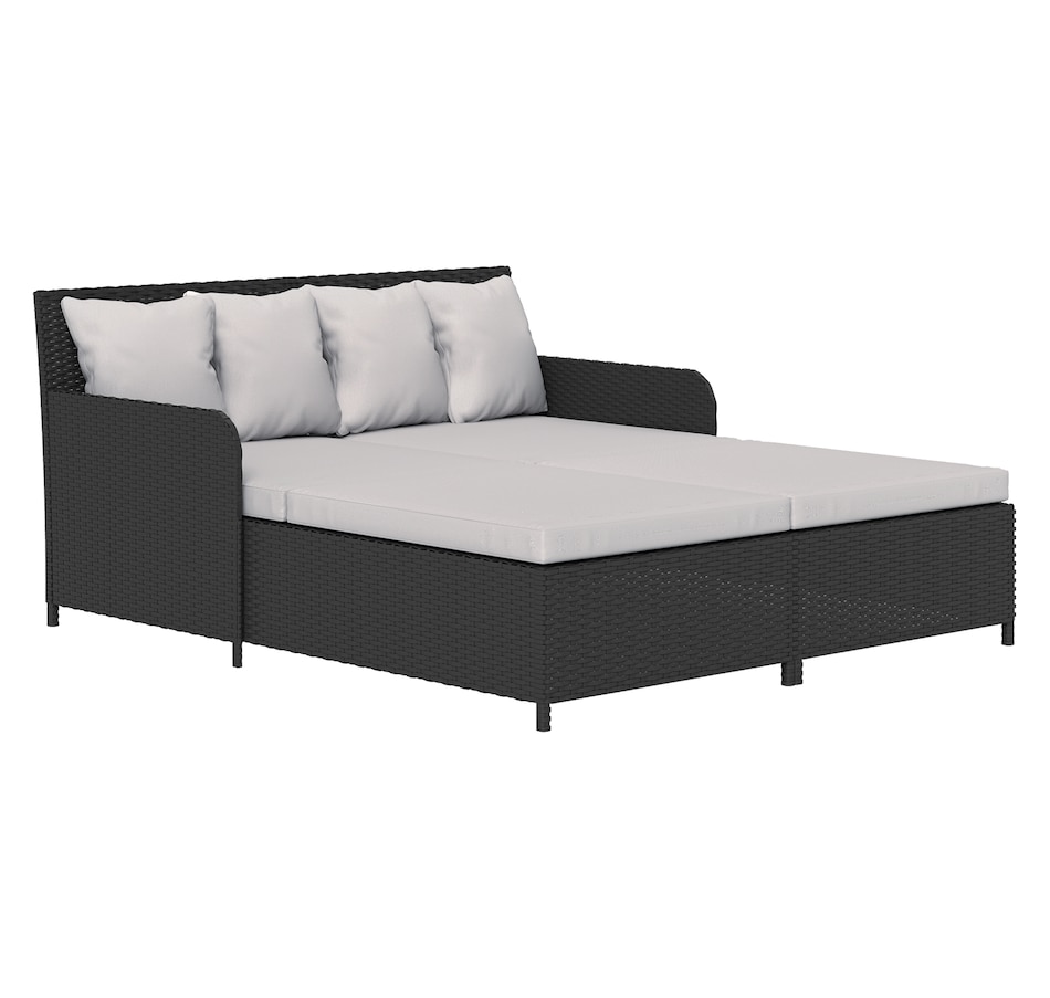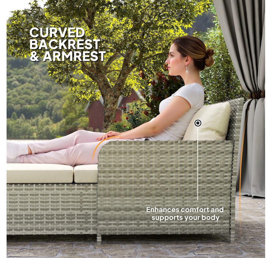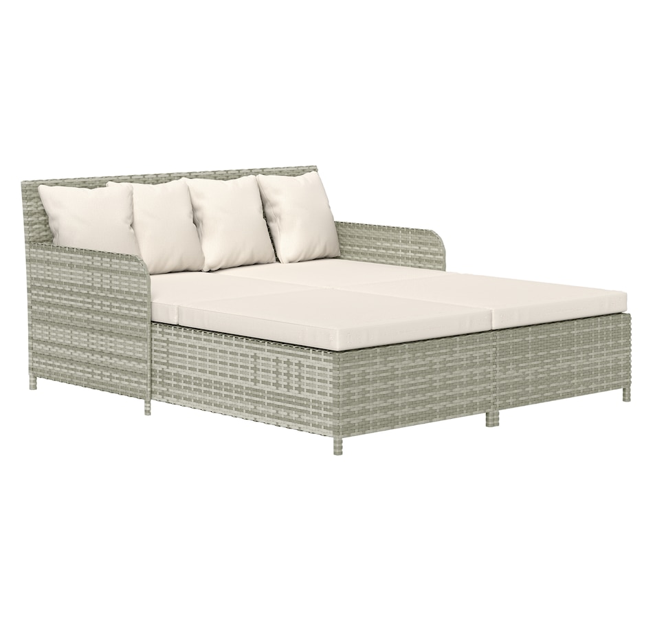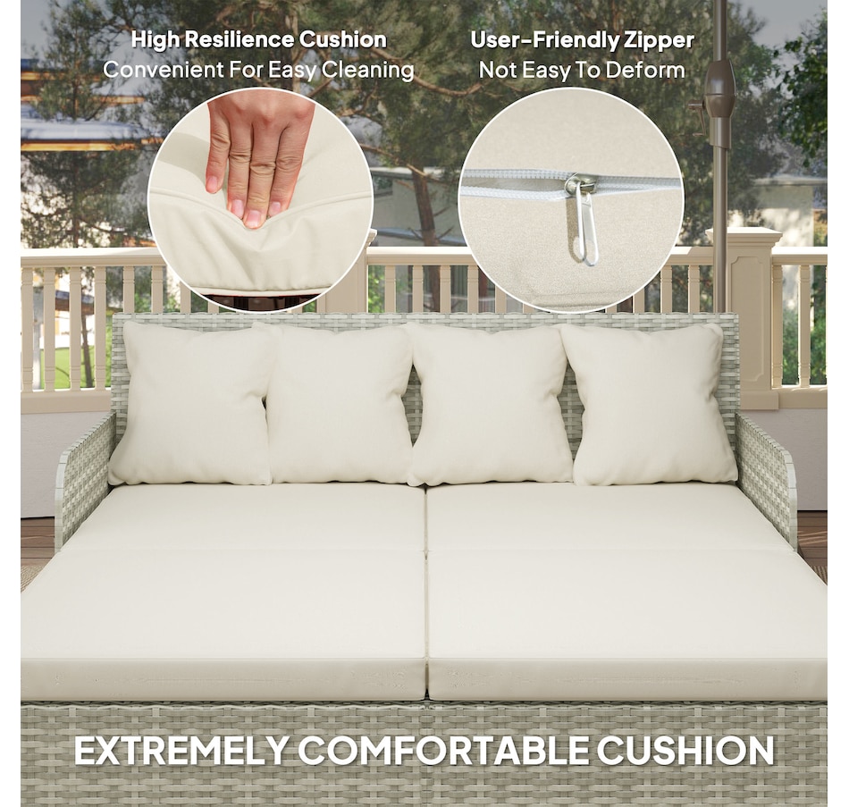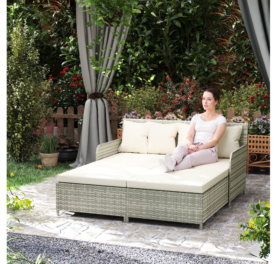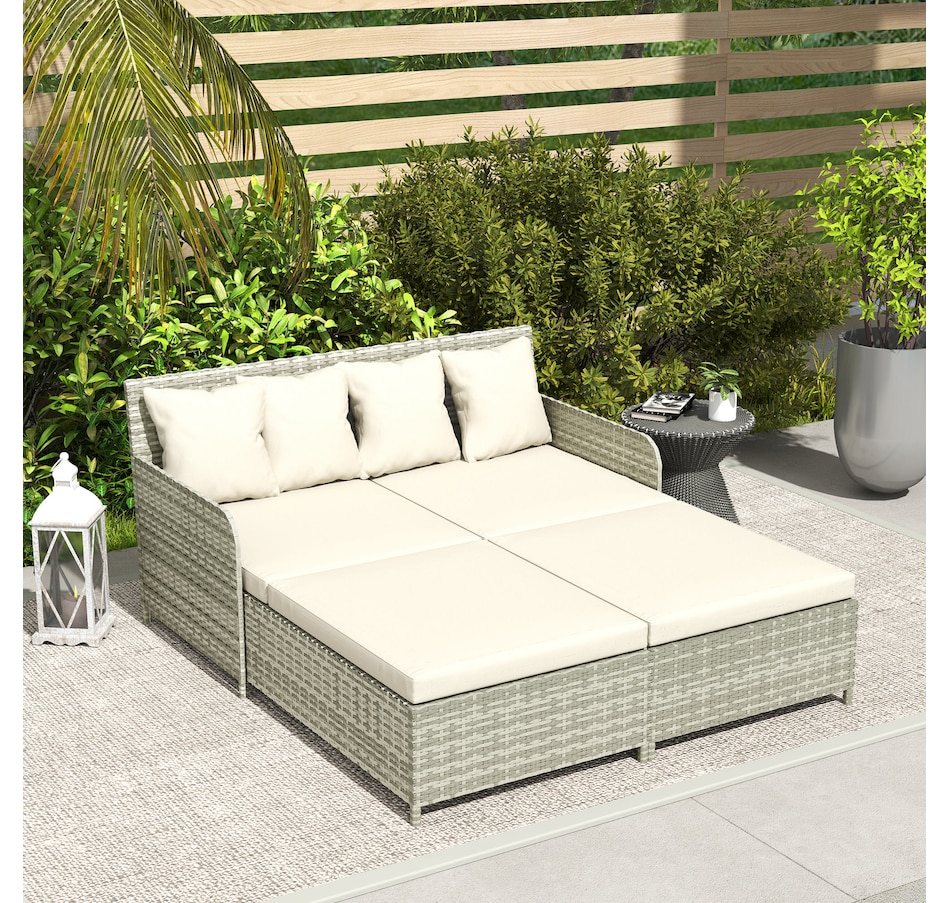 Transform your outdoor space into a cosy oasis with the Outsunny Rattan Double Bed. Featuring a high backrest and armrests for superior comfort, this patio daybed includes four zippable pillows that mould perfectly to your body. Its PE rattan and steel frame ensure endless summers of relaxation in your garden, by the pool, or on your deck.Features:
