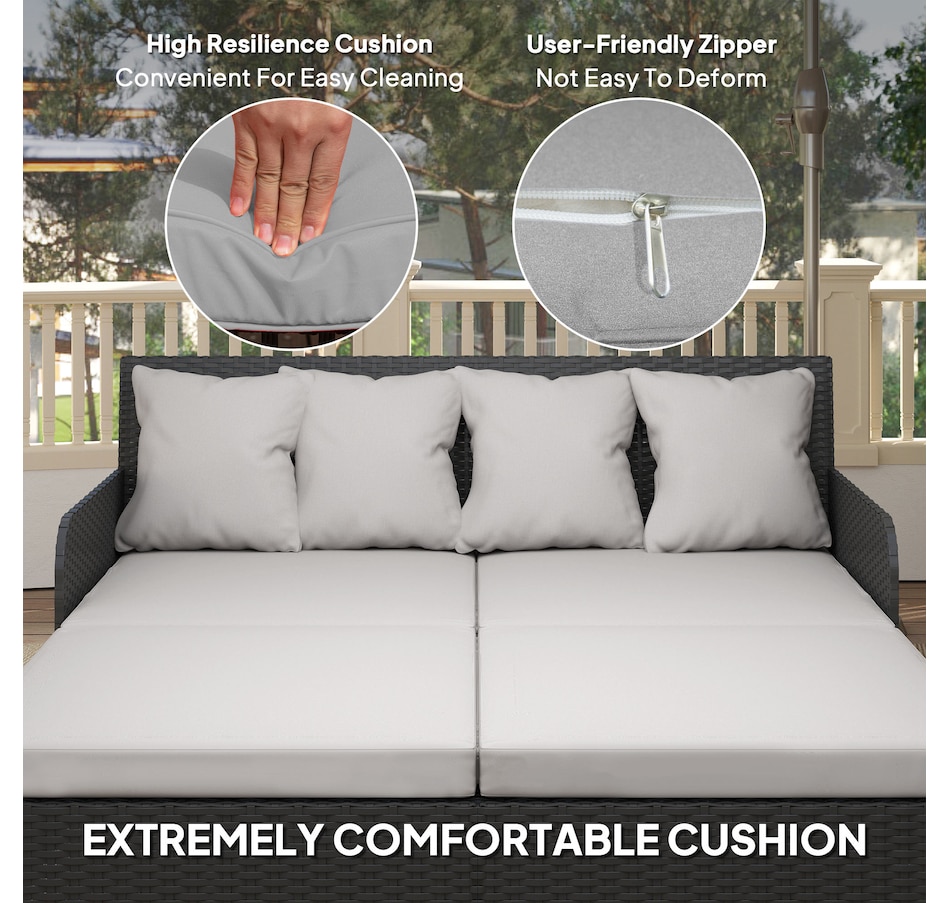 ● Materials: Galvanized Steel, PE Rattan, Polyester;