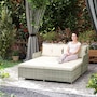 Rattan Outdoor Daybed, Sunbed Loveseat with 4 Pillows, Light Grey