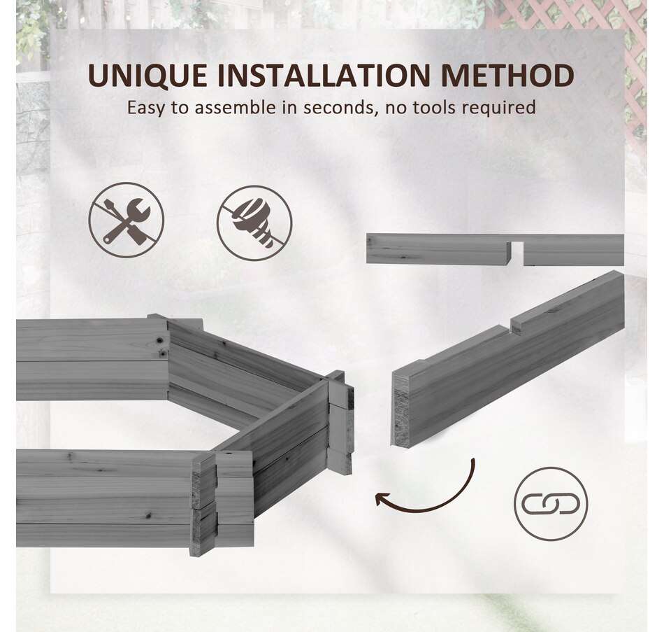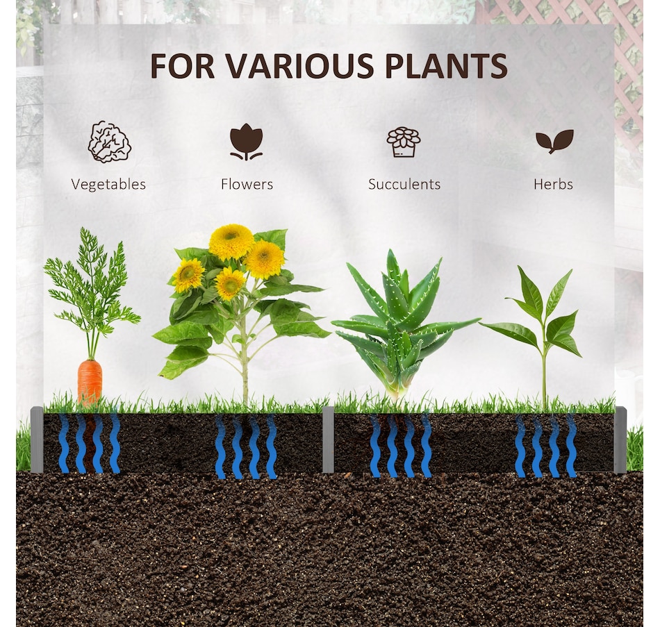 ● Easy to assemble, no screws required;● No-bottom design makes planter raised bed perfect for long rooted plants;