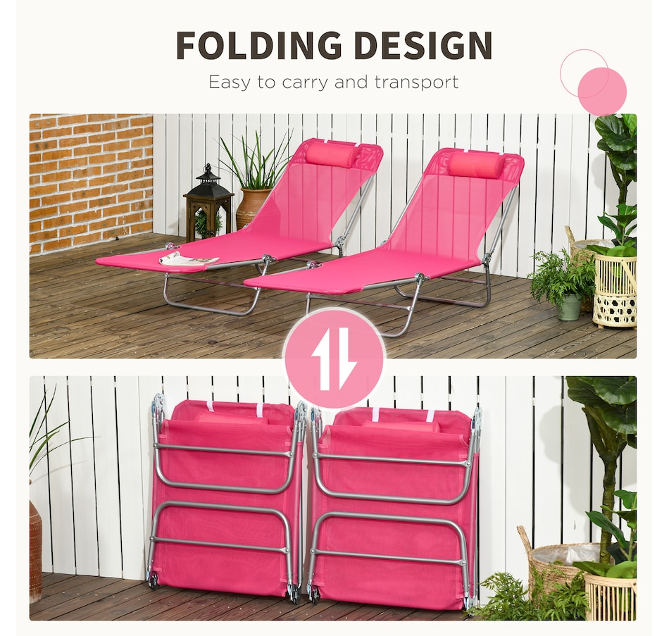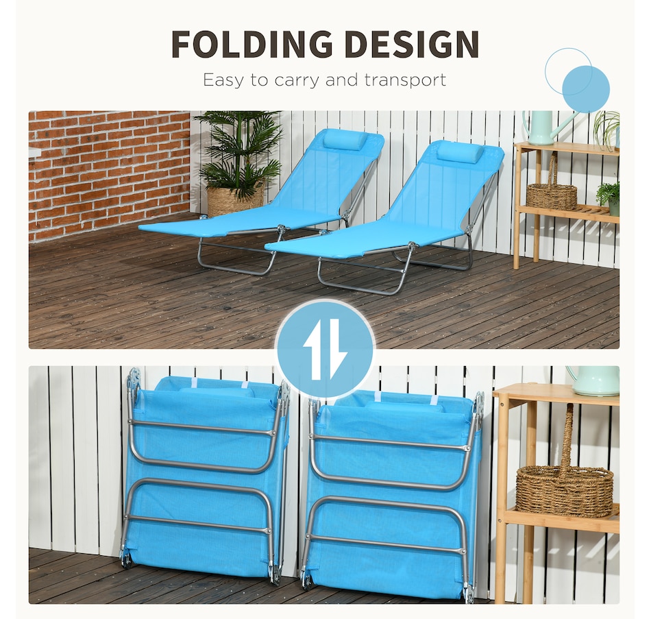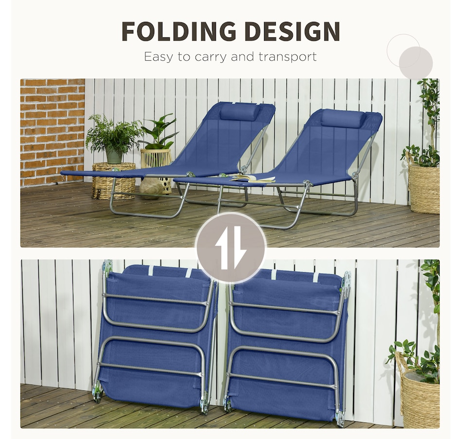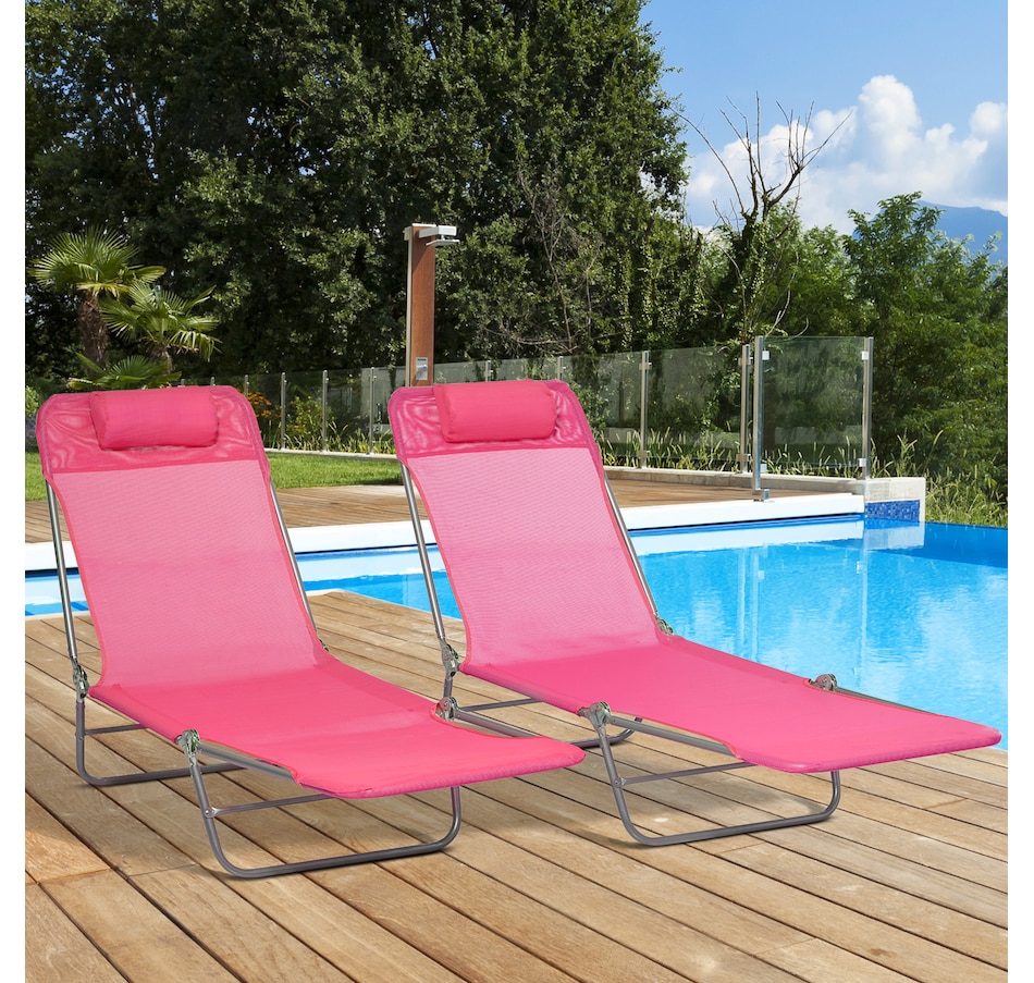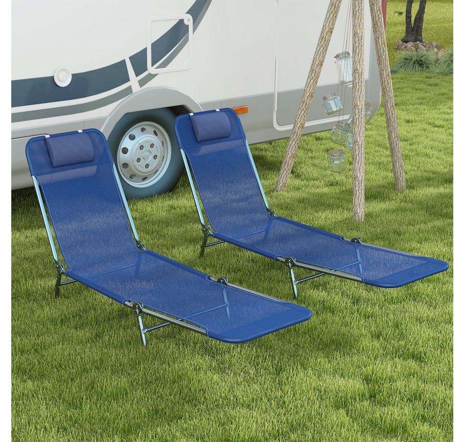 Wish you could pack up the comfort of the resort and bring it with you on the road? You're a step closer. Outsunny has two foldable outdoor lounge chairs, so you and a friend can lay back at the beach, camping, or the pool. The beach lounges feature recli