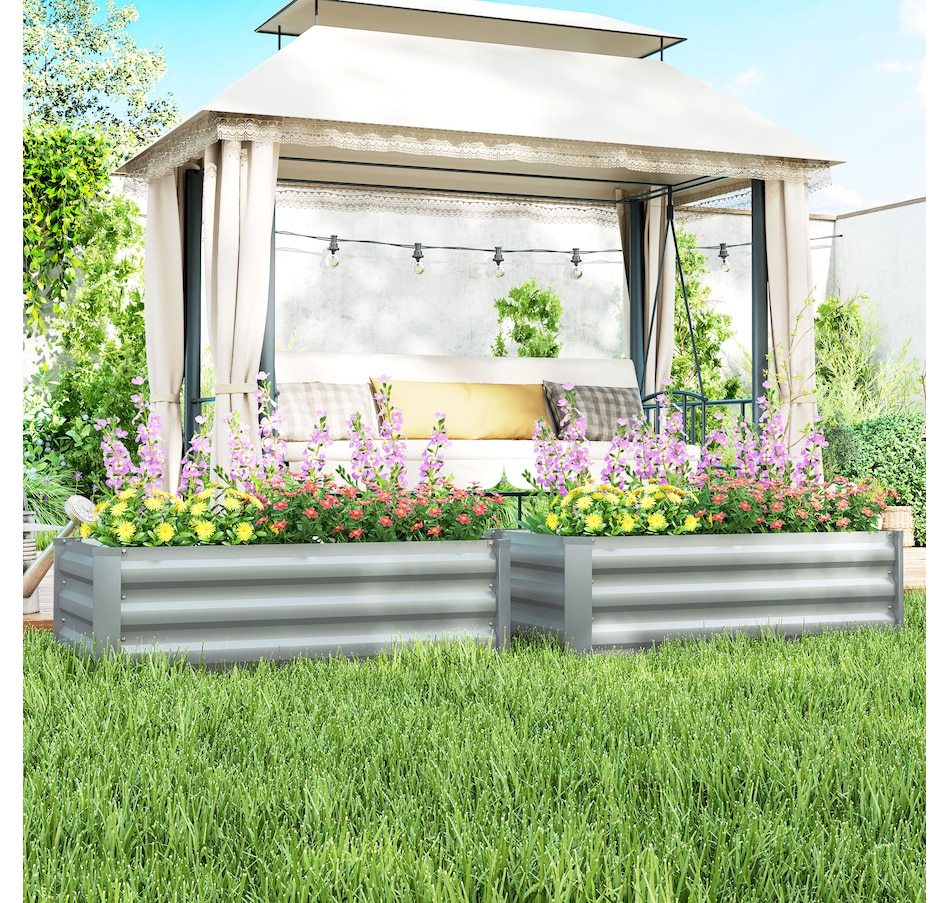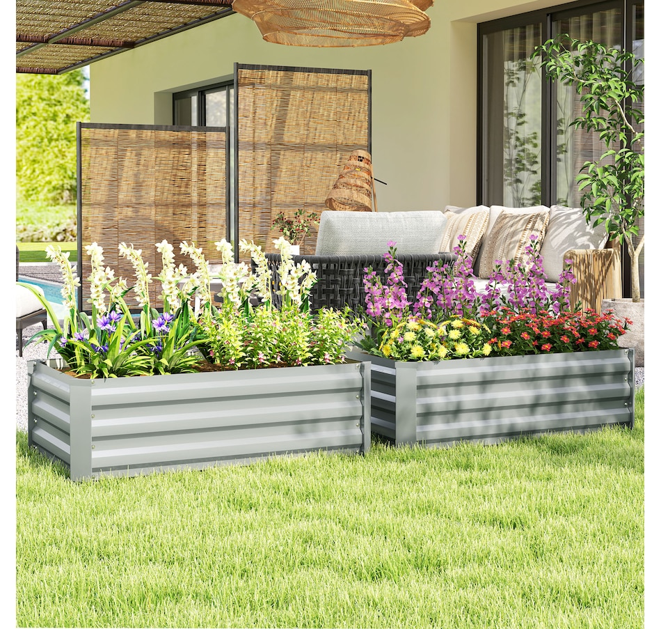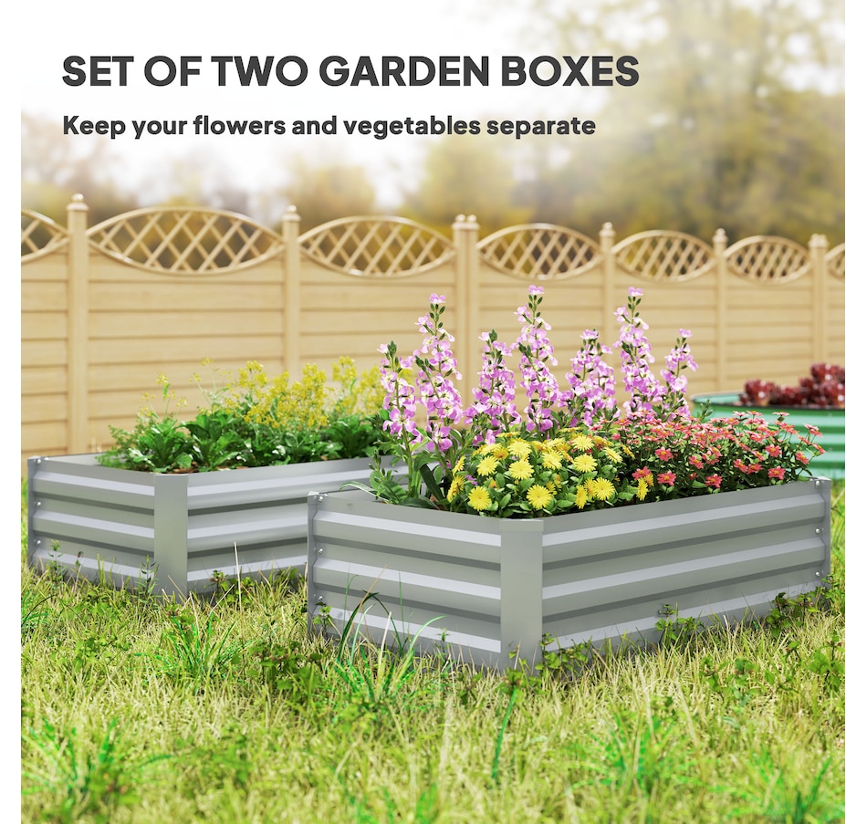 If you have multiple kinds of plants or flowers that you want to keep organised, this Outsunny galvanized raised garden bed is a great choice for you. Easy to blend in with natural surroundings, they are great for every garden. Made from galvanized steel, each piece is tough; the open bottom design means there's direct contact with soil for maximum growth. Comes in a set of two for double the growing power.