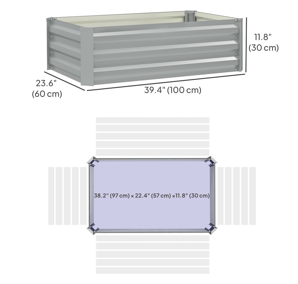 ● Planting Area: 38.2" L x 22.4" W x 11.8" H (97 x 57 x 30 cm);