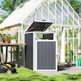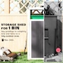 Keep your outdoor space tidier and less-odor with the Outsunny garbage bin shed, holding up to a 63.4-gallon (240L) trash bin. This outdoor garden shed features a ventilated design for better airflow and a lockable door for security. The 180° lifting lid allows for effortless disposal, keeping your garden clean and beautiful. Crafted with a galvanized steel frame, this outside storage shed withstands the elements, making it a reliable outdoor garbage storage solution.