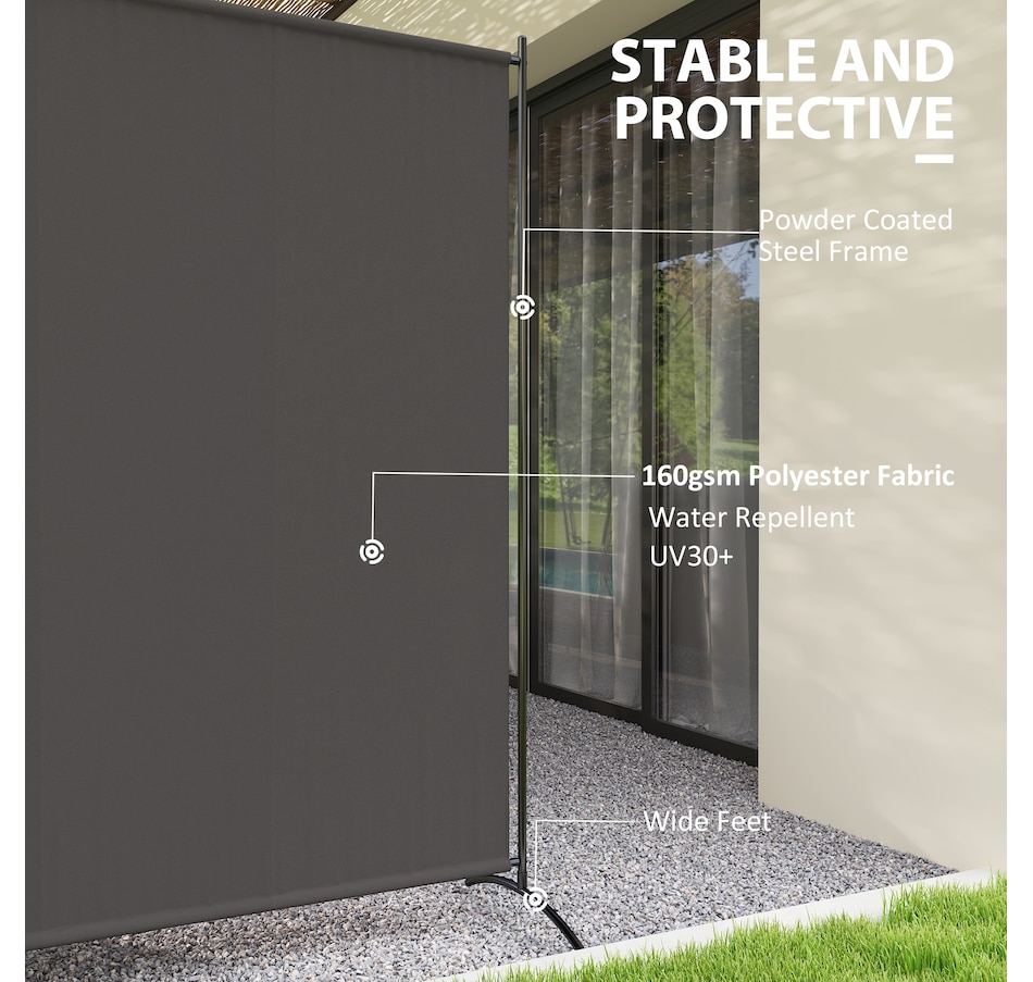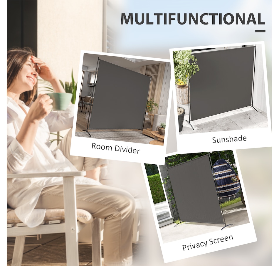Transform your outdoor space with the Outsunny single panel room divider! This lightweight divider offers an instant privacy solution, doubling as a shade with UV30 protection and water-repellent fabric. Its outdoor-ready steel frame with wide feet withstands the elements and offers stability. Enjoy your space in peace in your home or garden!Features: