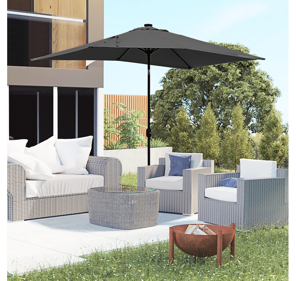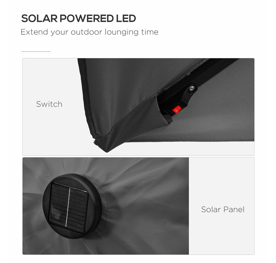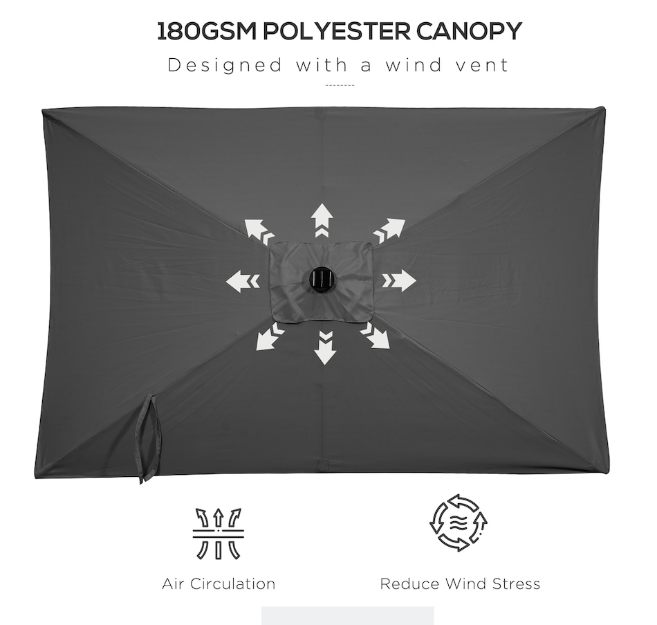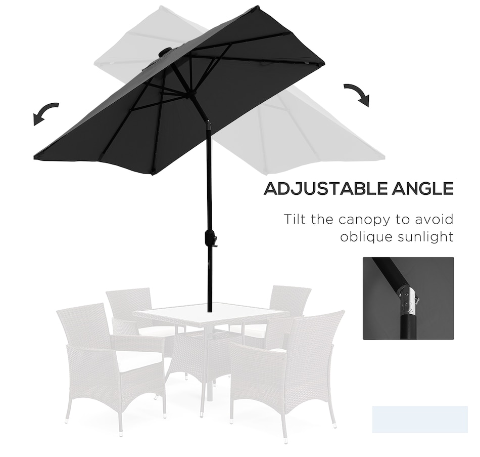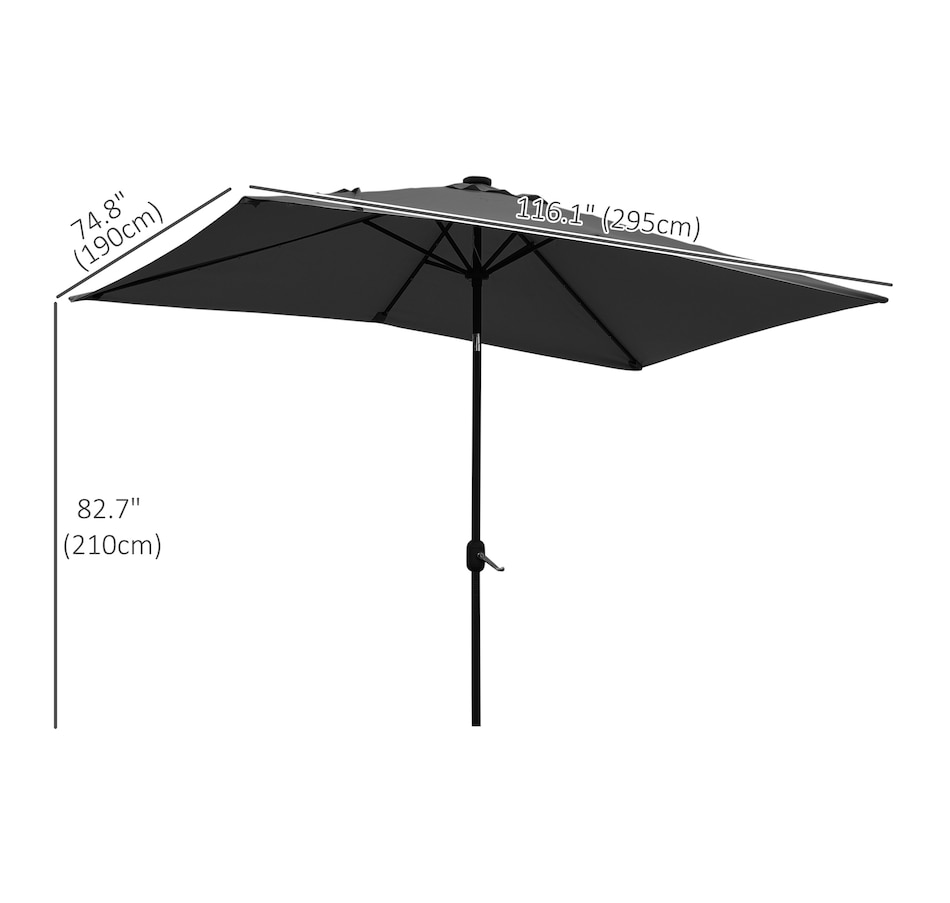 Enjoy the outdoors this summer with Outsunny's rectangular patio umbrella. It provides ample UV protection, has an adjustable tilt feature for comfortable seating, and a solar-powered LED system for energy-efficient evening lighting.Features: