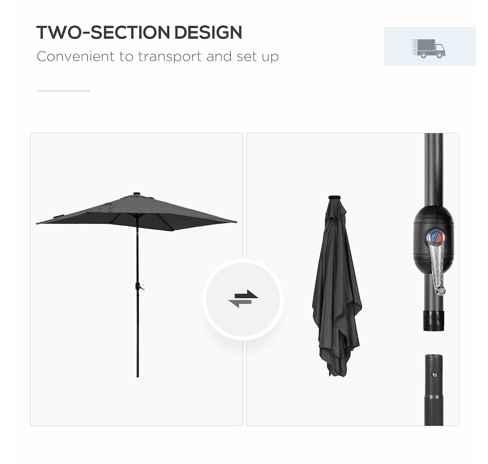 ● Two-section umbrella pole makes it easy to transport;