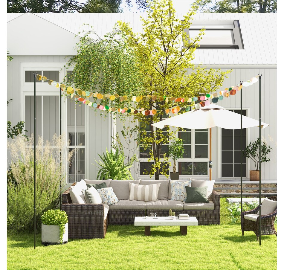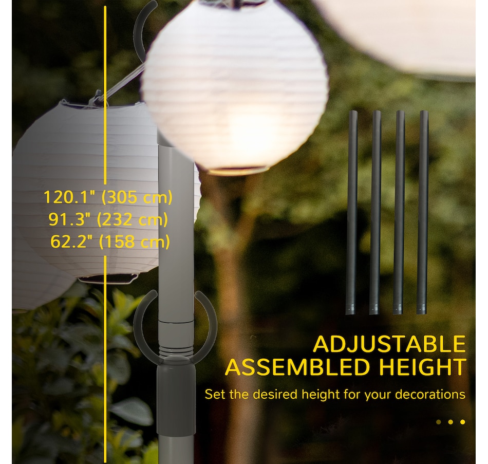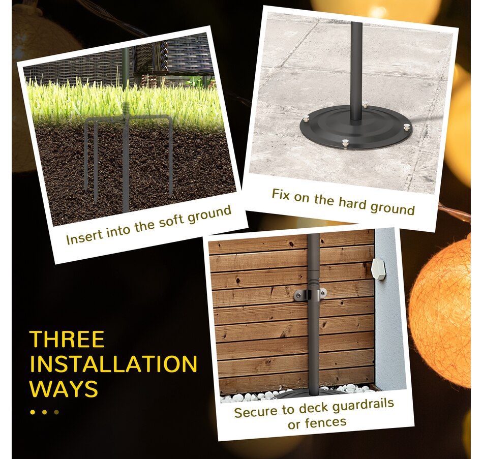 Light up your nights and add ambiance to your patio or porch with these 4-string light poles from Outsunny. Whether you're hosting a holiday barbecue, a picnic, or an evening chat, these versatile poles support string lights, banners, and other decorations to elevate any event. Adjustable in height and built to withstand the seasons, they are a stylish and functional addition to your outdoor setup.