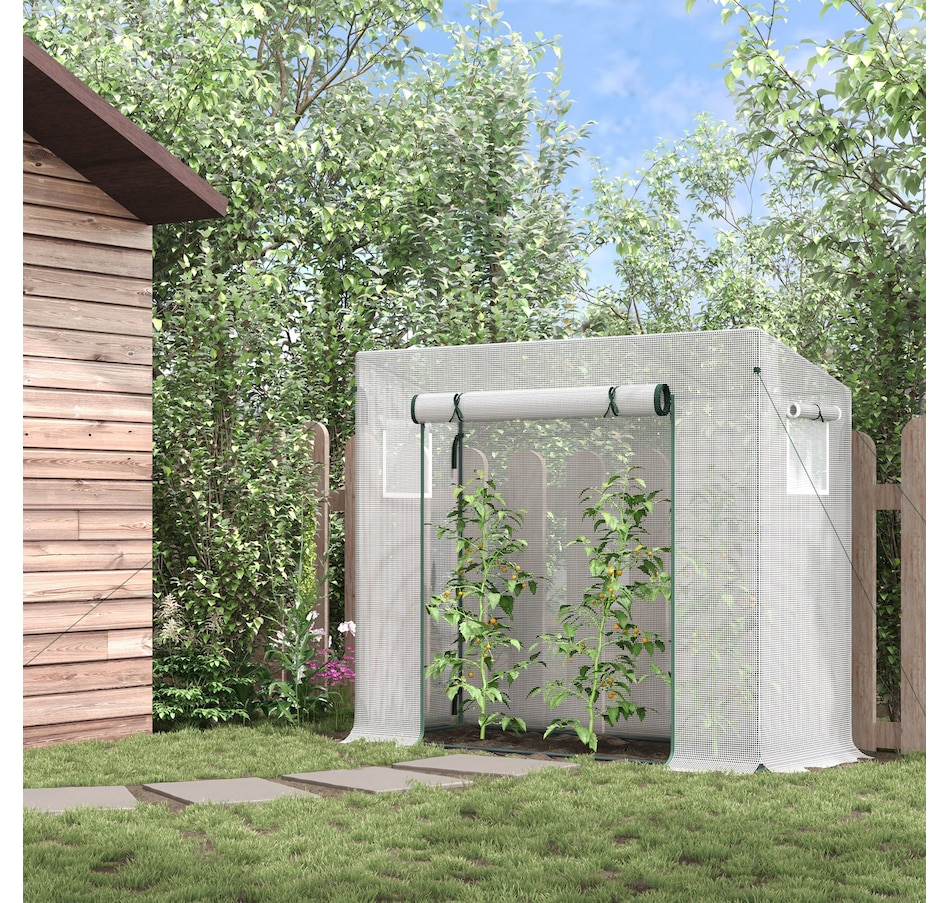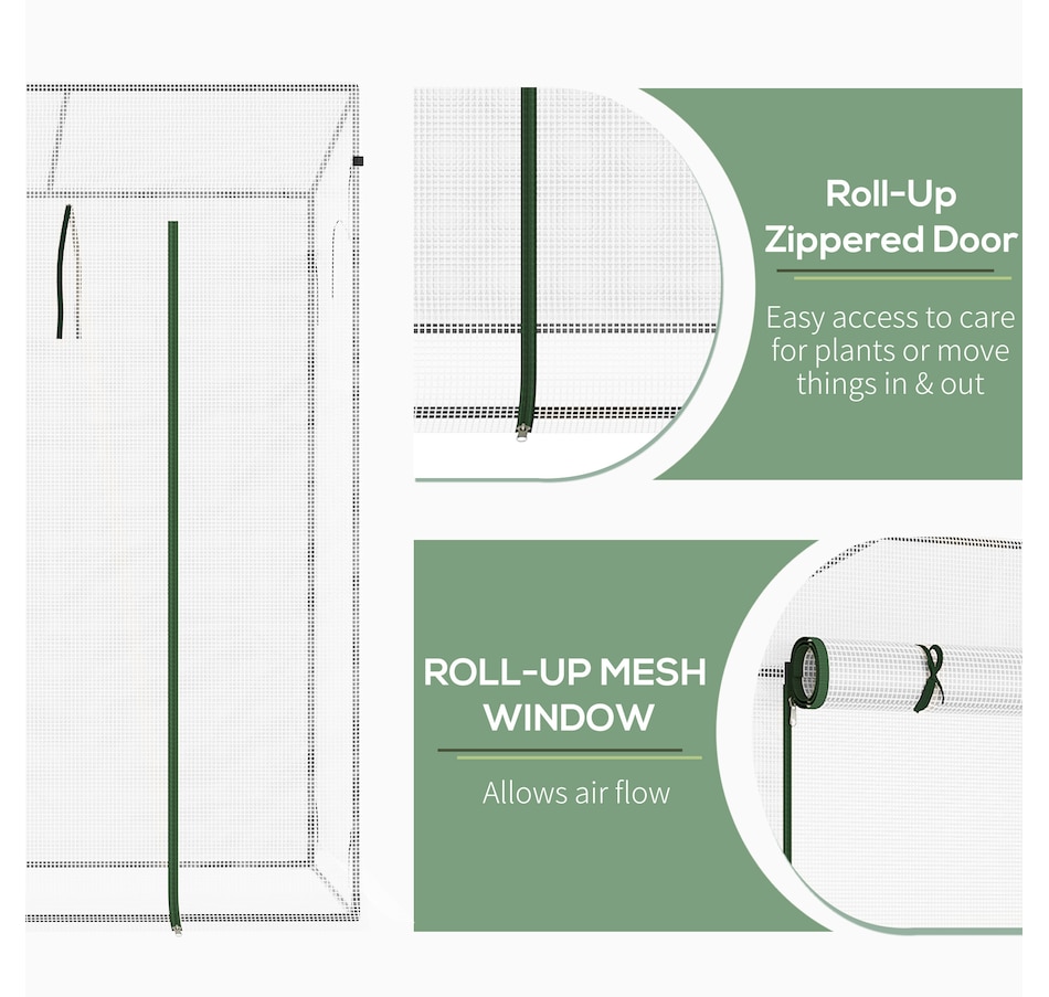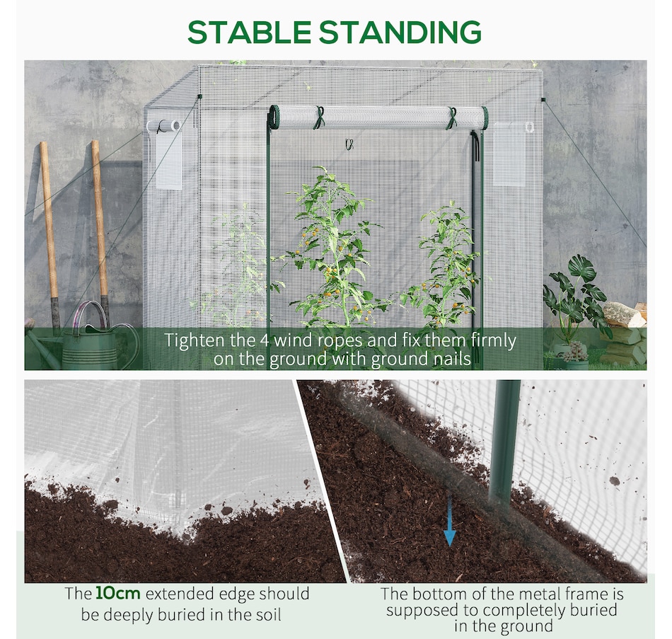 Whether it's early Spring or late Autumn, you'll be sure to grow plants, vegetables and more to their best, wherever - get this portable greenhouse from Outsunny. It comes with a steel frame for a steady core, with accessories included for extra stability. The plastic coat creates a protective shell, holding in the heat and shielding from wind and rain. Features a roll-up door to enter and leave to access your plants at any time. Simply put up, go and grow.Features: