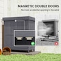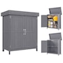 The Outsunny shed is an ideal solution for storing tools and garden accessories. With a 2-tier shelf, it provides ample storage space. The shed features double doors in the front and a top lid opening, allowing for easy access. Its water-resistant asphalt roof and painted wooden surface ensure durability for outdoor use. This compact and functional vertical garden shed is a valuable addition to your garden, keeping your tools conveniently accessible.Features: