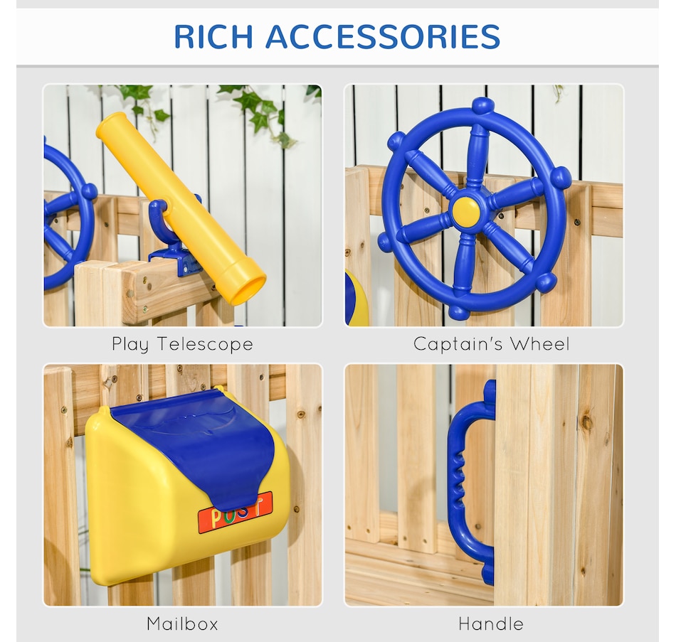 ● Includes a captain's wheel, telescope, and mailbox for endless adventure;