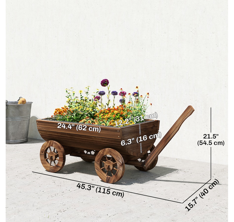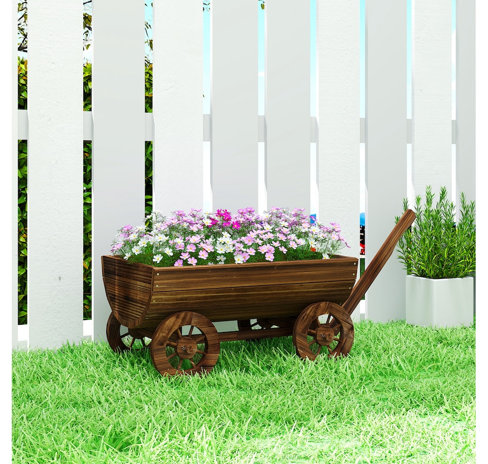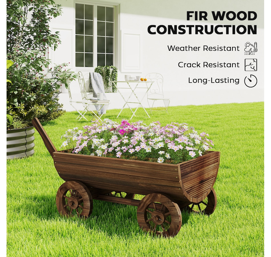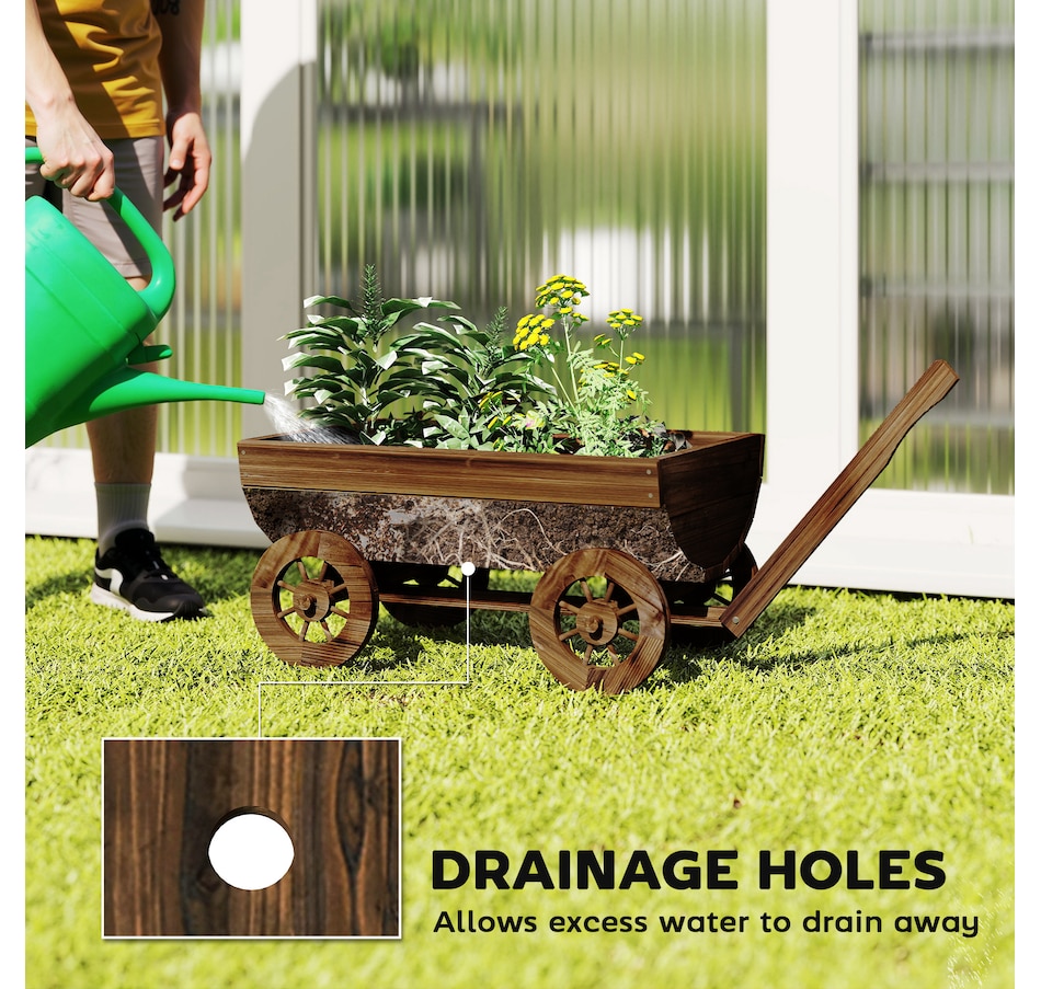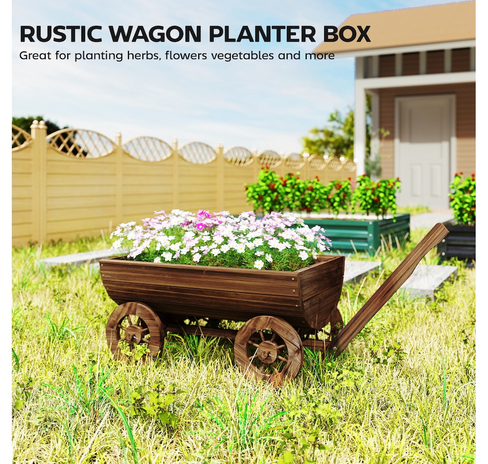 Bring personality and flexibility to your garden with this Outsunny wagon planter. Designed with a rustic charm, it creates a nostalgic focal point that connects your outdoor space with the warmth of home. The spacious raised garden bed provides room for vibrant flowers or herbs, while the easy-rolling wooden wheels let you move your planter box effortlessly. Blend style and function to craft a cohesive, inviting outdoor retreat that grows with every season.