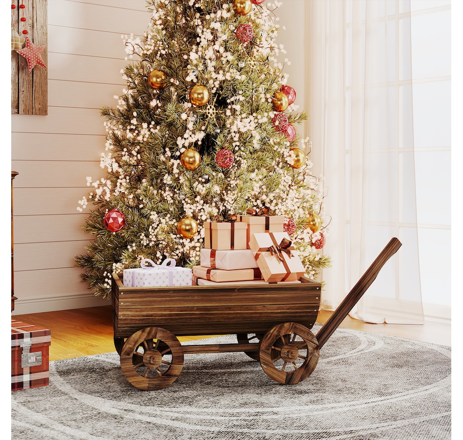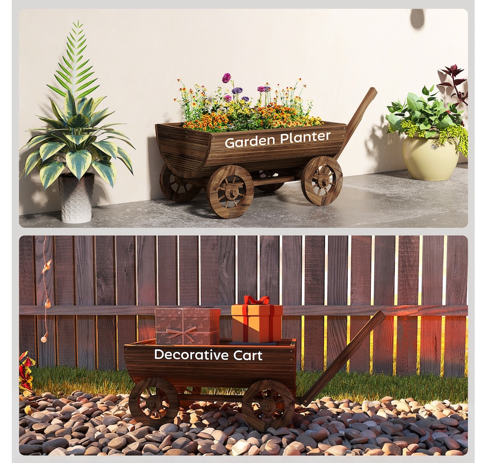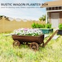 Wooden Wagon Planter Box, Mobile Garden Planter with 4 Wheels