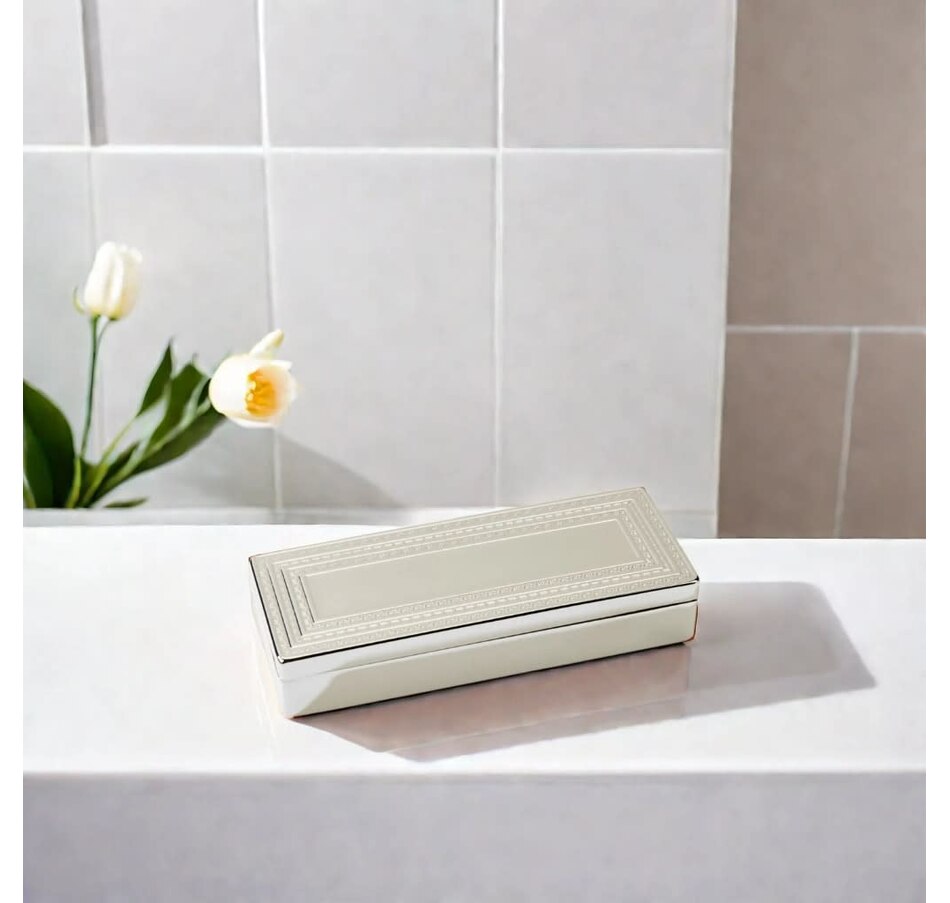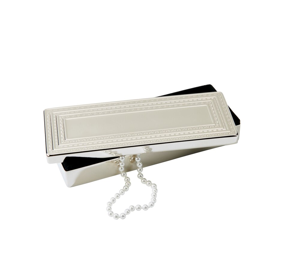 Effortlessly blend style and functionality with our Rectangular Lift-Top Jewelry Box. Compact and chic at 1.5" x 3" x 7.75", this box is designed for the modern organizer. The lift-top feature reveals multiple compartments, ensuring your jewelry is neatly organized. Crafted with precision and timeless appeal, it adds sophistication to your dresser or vanity. Ideal for gifting, this jewelry box is the perfect solution for keeping your precious pieces both accessible and tangle-free.Features:Compact rectangular designDimensions: 1.5" x 3" x 7.75"Lift-top for easy accessMultiple compartments for organized storage