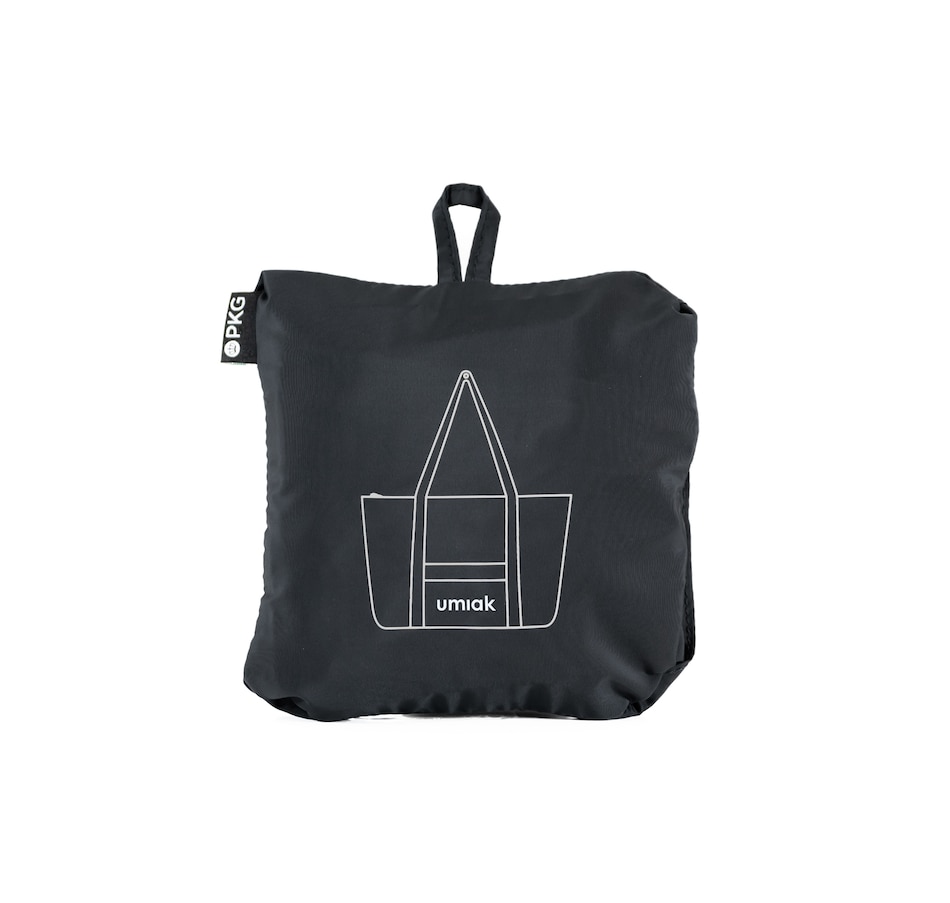 This extremely durable umiak tote is made with water-resistant recycled material and tear-resistant fabric, and is built with reinforced internal seams for additional strength.
