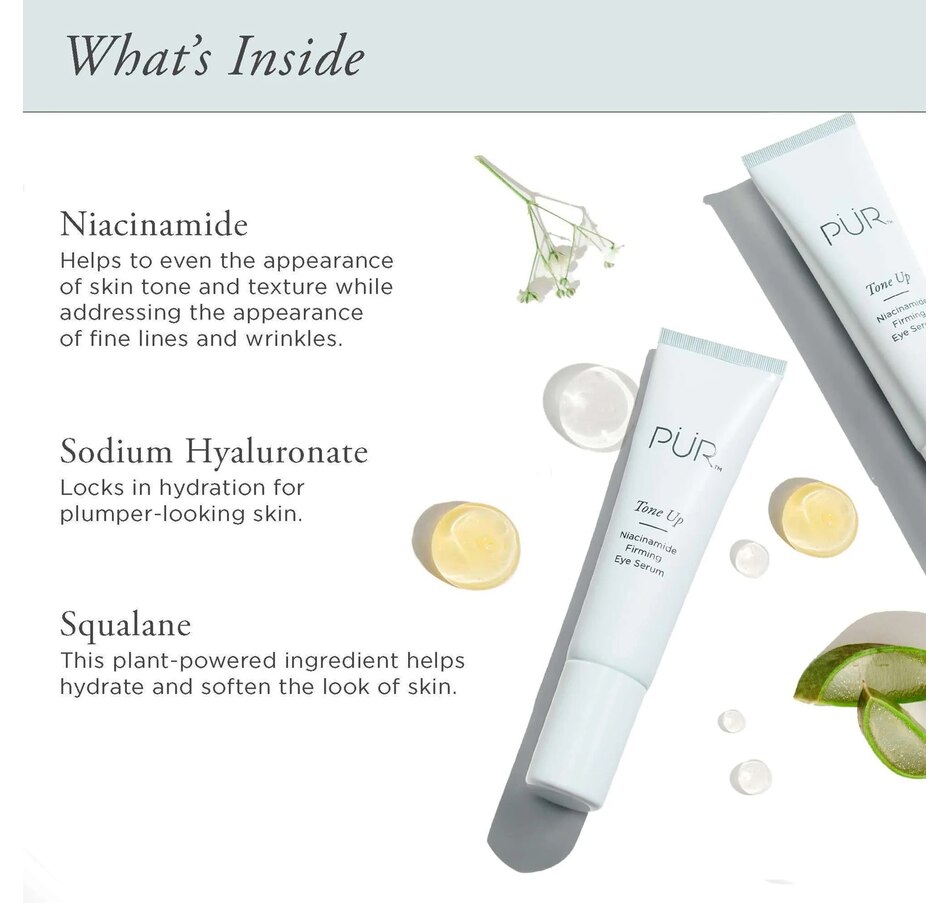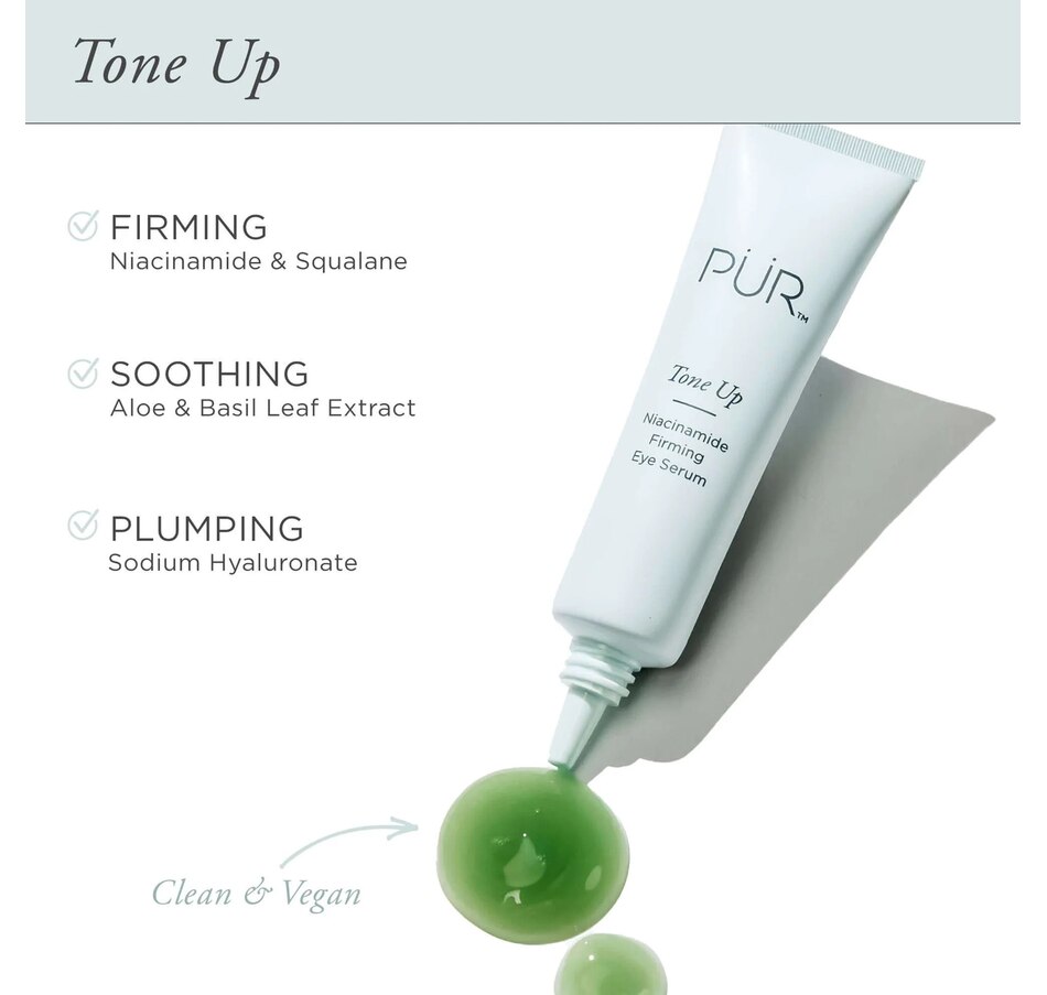 Help lift, smooth, and plump the appearance of the under eye area with PÜR Tone Up Niacinamide Firming Eye Serum.