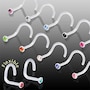 PTFE / BioFlex nose ring with screw back‚Vibrant color CZ is press fitted on top‚Easy and comfortable to wear‚PTFE is, flexible, non stick, and hypoallergenic material‚Thickness : 18GA / 1mm‚CZ Size : 2mm‚Available in different colors‚Material : PTFE, Cubic Zirconia