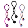 PVD Plated Spiral Navel RingA far cry from the classic belly barbell this Spiral Navel ring twist and turns its way into your heart. A perfect piece for summer this metallic beauty is crafted out of pure 316L Surgical Steel and then PVD plated for a shock of brilliant, long lasting color. The polished uneven ends of this twist measure 45mm and 36mm in length. Comes with 2 matching precision threaded 6mm balls. Thickness : 14GA / 1.6mm Material : PVD Plated 316 Surgical Steel