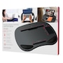 Get comfortable with Packard Bell’s portable cushioned laptop desk. Made specifically with the busy worker in mind, this unique apparatus features a universal tablet slot that fits most mobile phones, so you can always stay up to date with your notifications while you're working through the day. Its ergonomic design reduces muscle tension, allowing you to comfortably work longer hours, and staying relaxed. And if you're travelling, there's no worries there, either! This portable desk includes a travel-ready handle, so you can take it anywhere on-the-go!