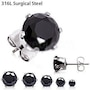 316L Surgical Steel Round CZ Stud Earring.316L Surgical Steel Stud Earring with finest prong set Cubic Zirconia.Each Earring comes with a metal clutch and a rubber clutch.A grooved post helps to prevent loss of the clutch.Available in 5 CZ sizes.
